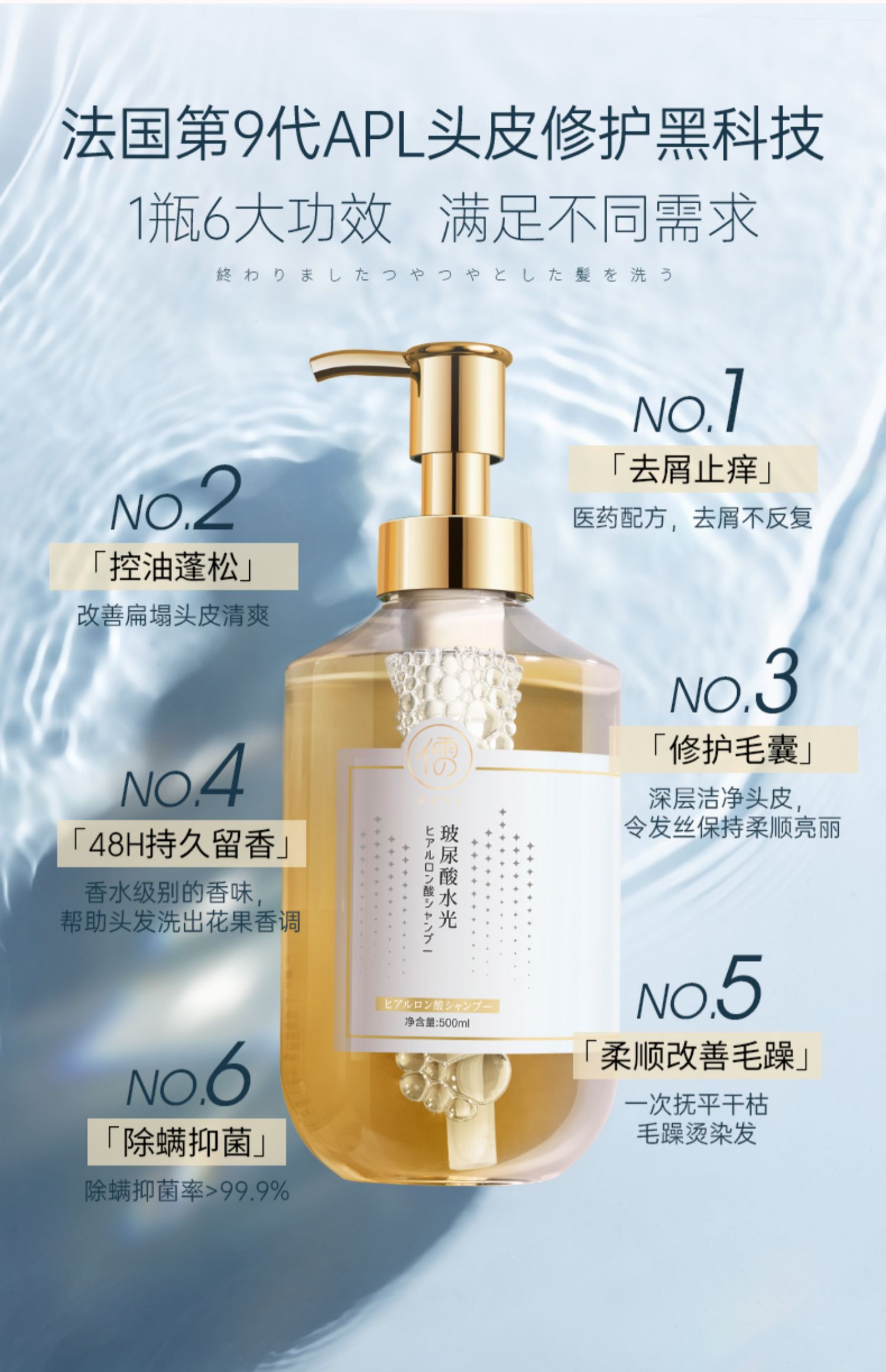 儒意玻尿酸水光洗发水500ml 控油蓬松 氨基酸无硅油 去屑止痒 除螨留香洗发露男女士 | 儒意官方商城