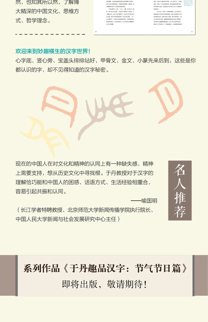 和于丹一起,品味汉字的匠心独运,找寻我们的“心之所起”。
