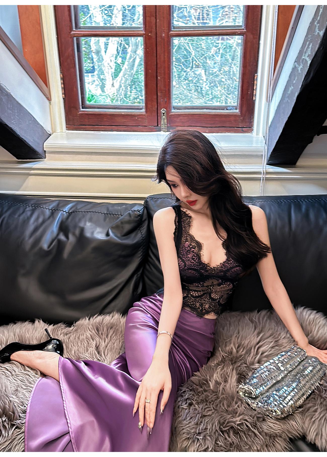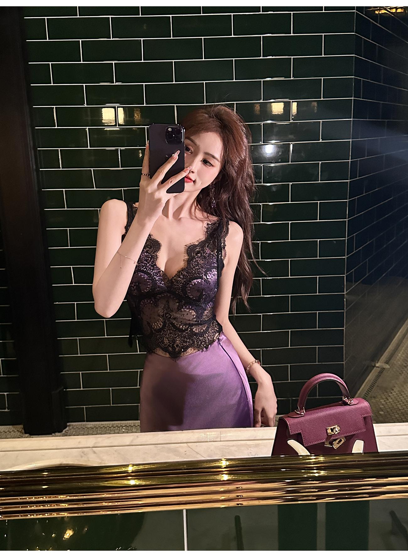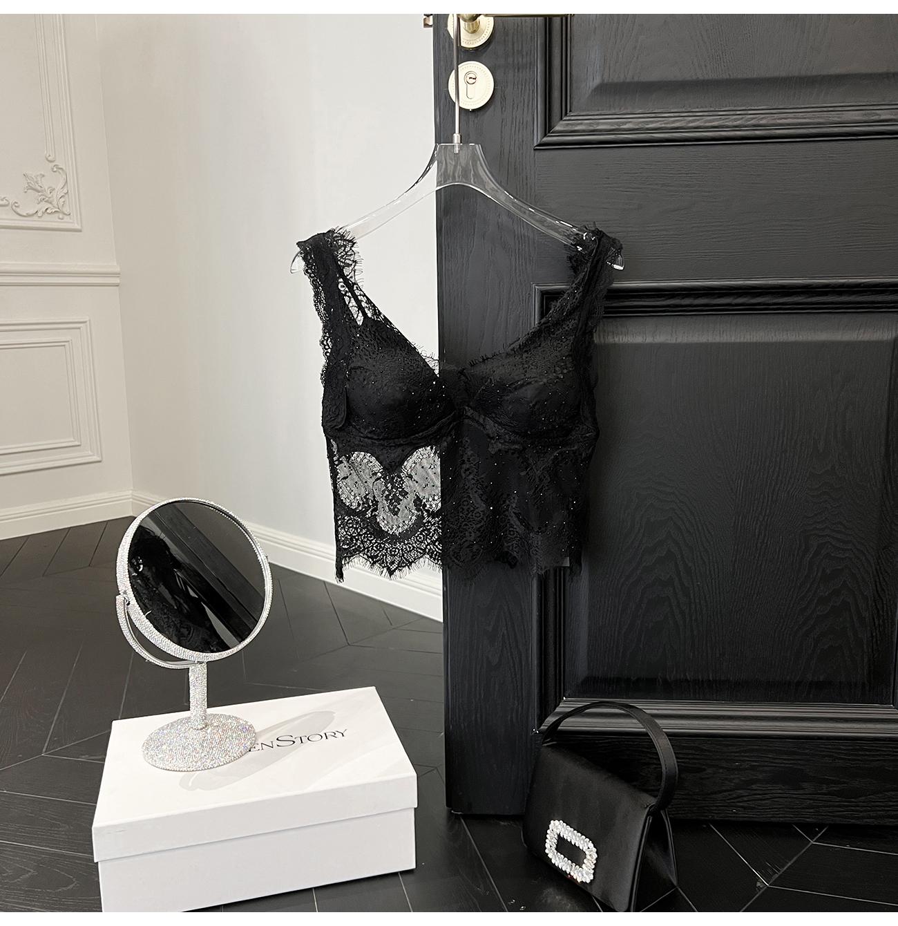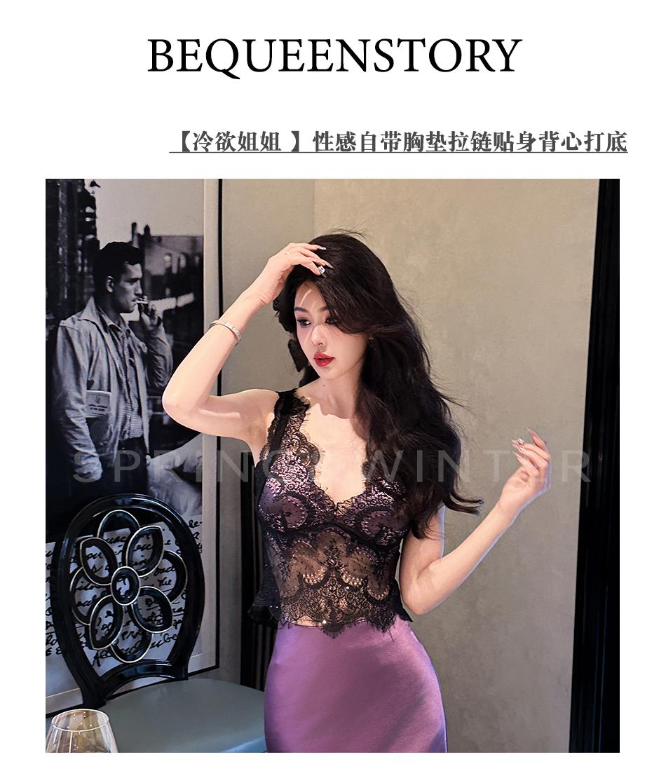 BeQueenStory【冷欲姐姐 】性感自带胸垫拉链贴身吊带醋酸背心打底