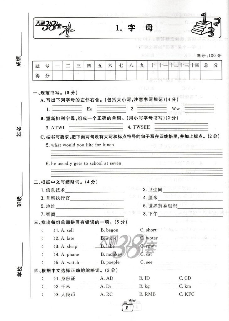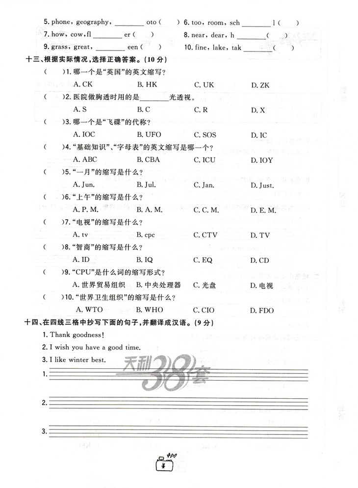 2019版天利38套 小学总复习专项测练英语牛皮卷