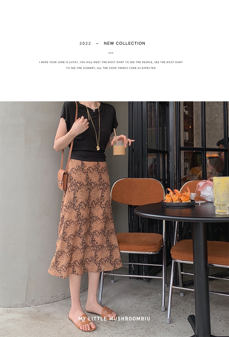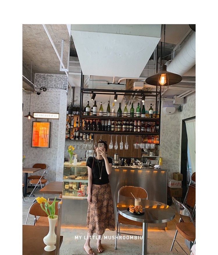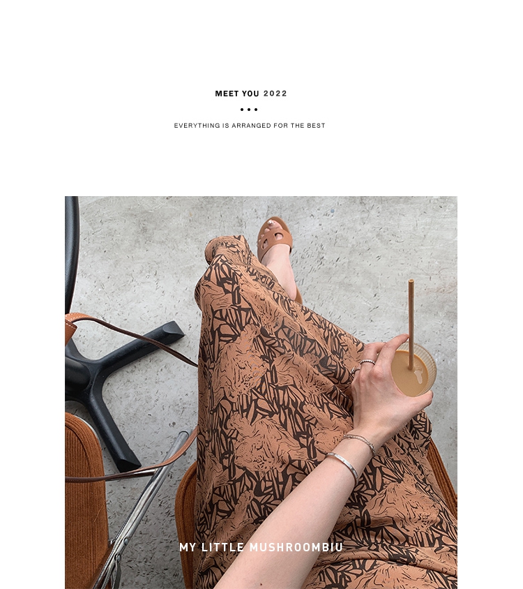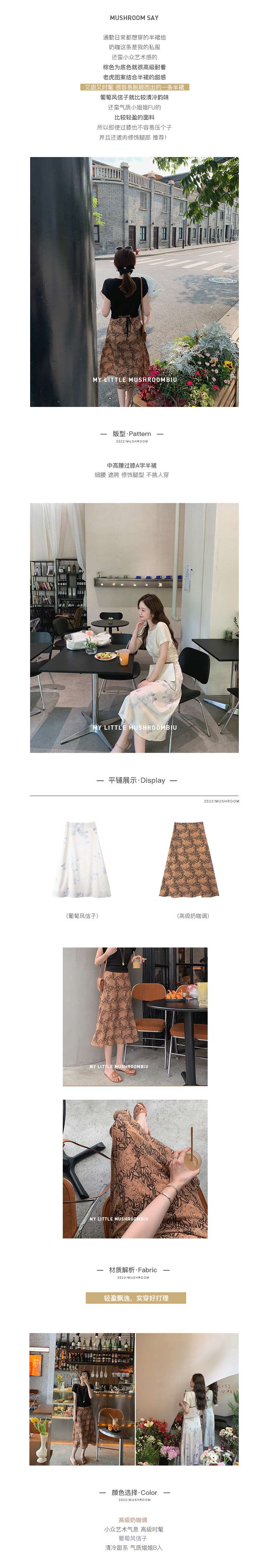 金蘑菇菇【梵高的画】断码特价~抽象艺术感中高腰过膝a字藏肉印花半身裙