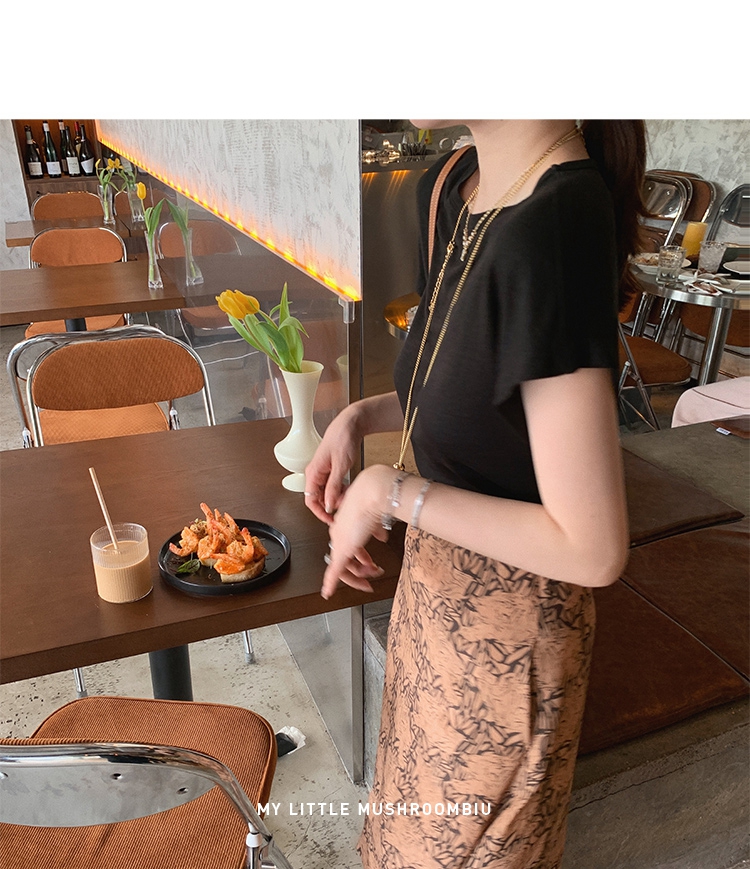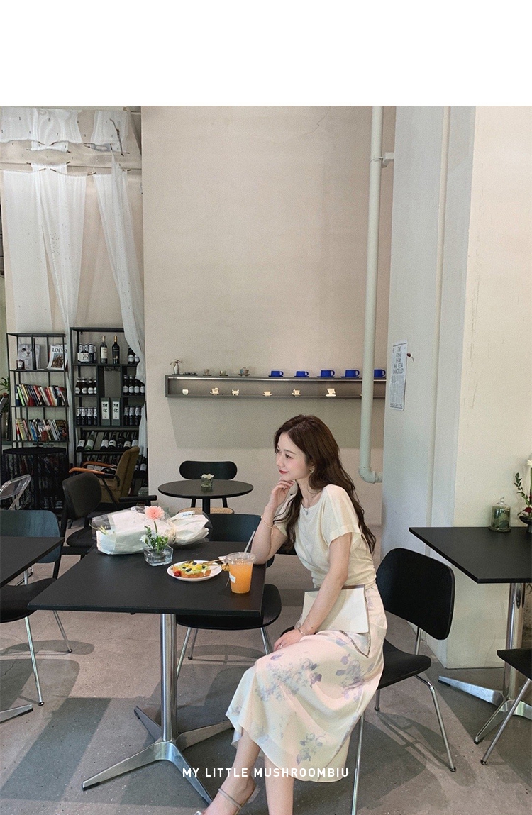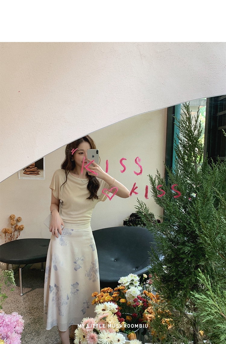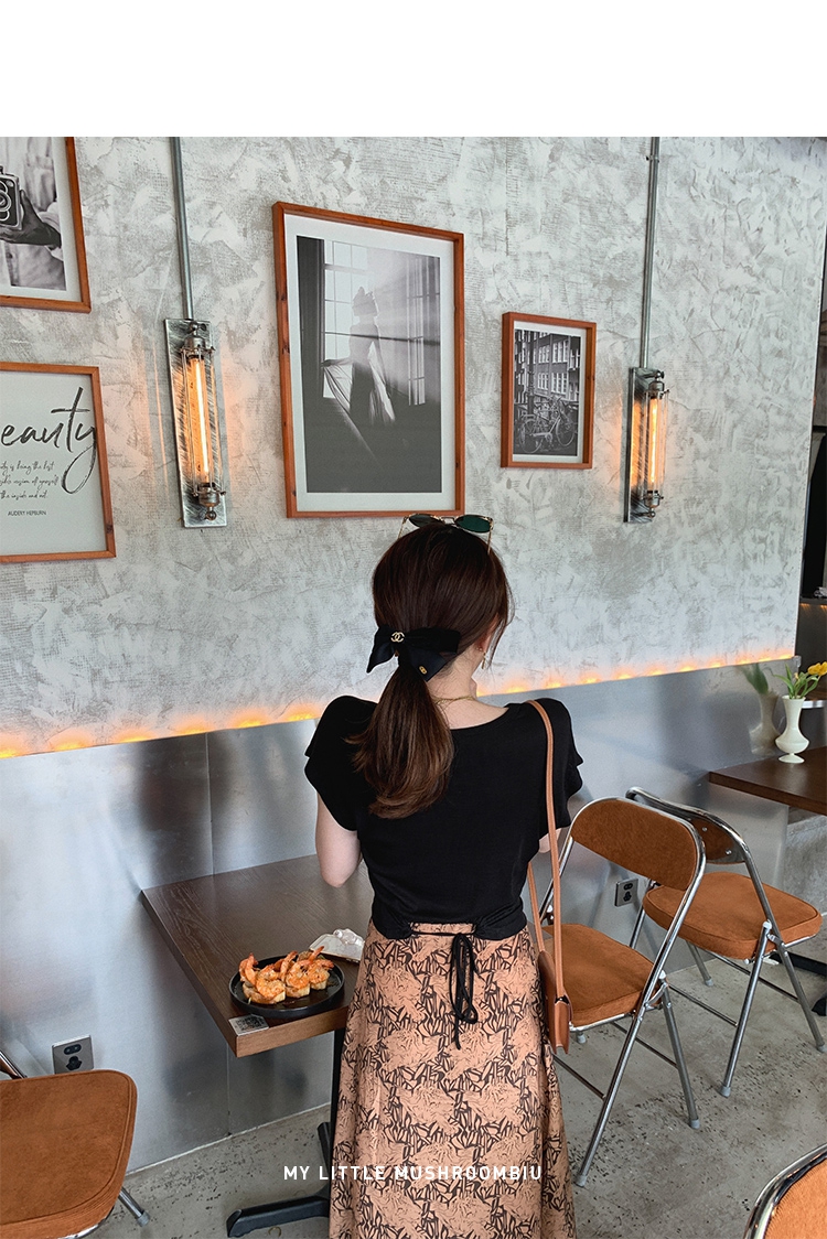 金蘑菇菇【梵高的画】断码特价~抽象艺术感中高腰过膝a字藏肉印花半身裙