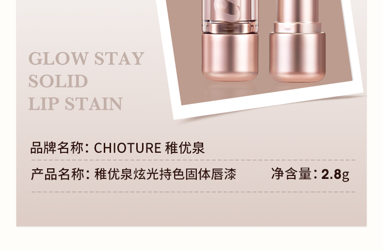 稚优泉(CHIOTURE)炫光持色固体唇漆镜面水光唇彩不易沾杯唇釉送女友闺蜜礼物