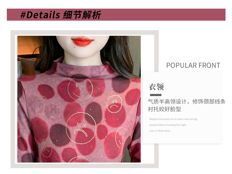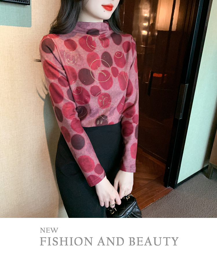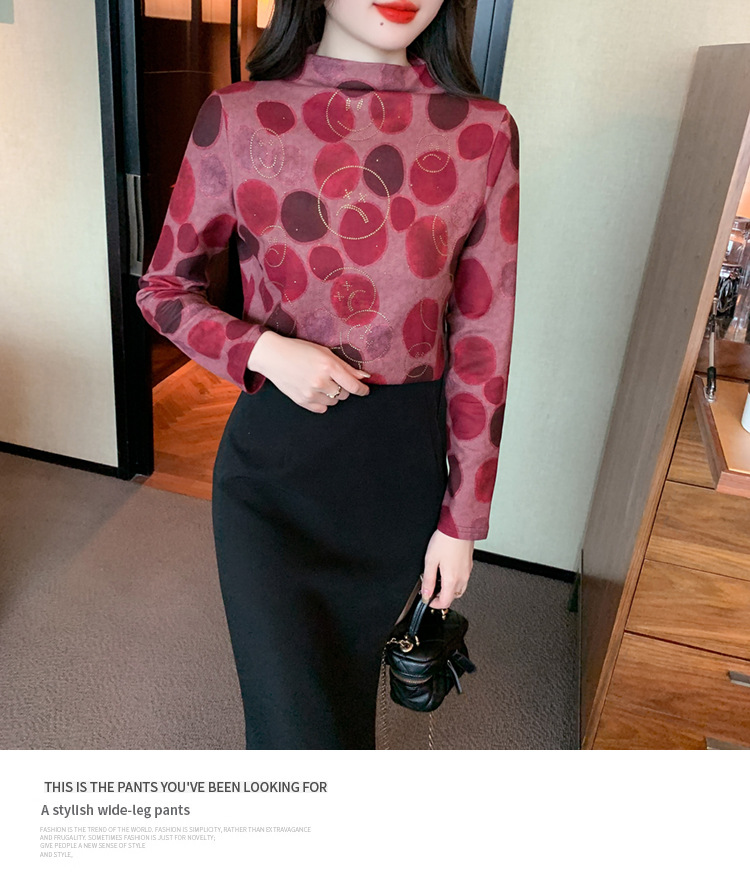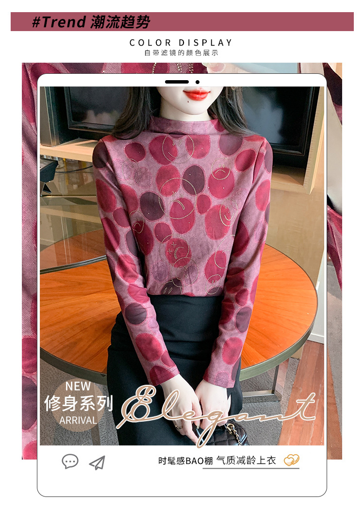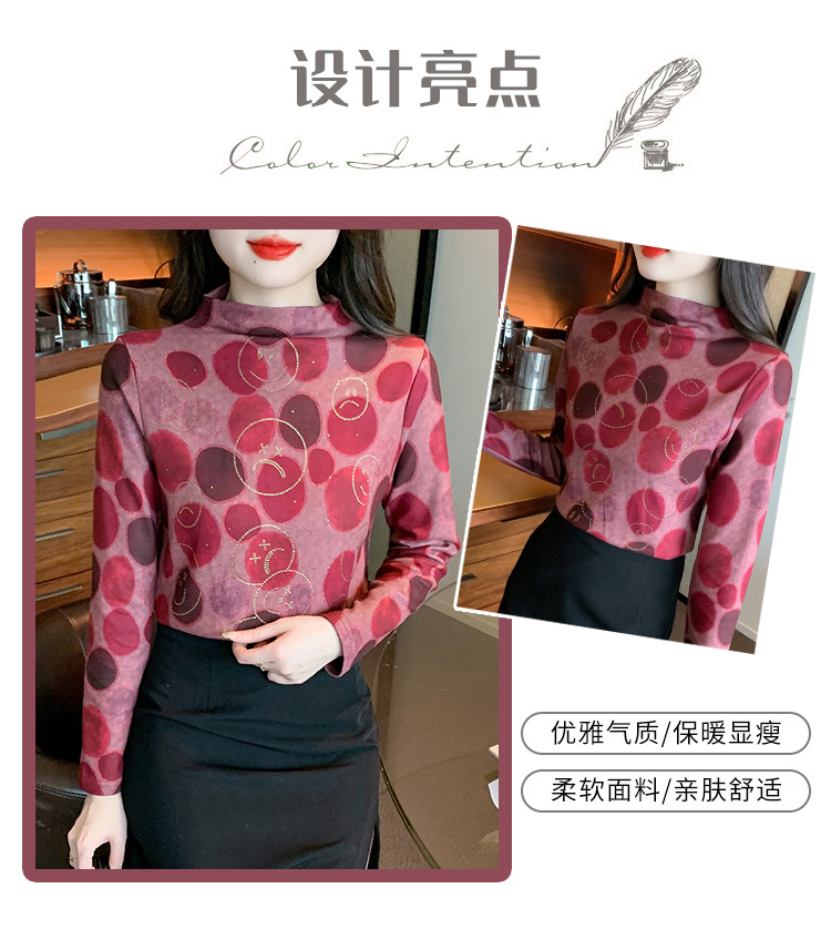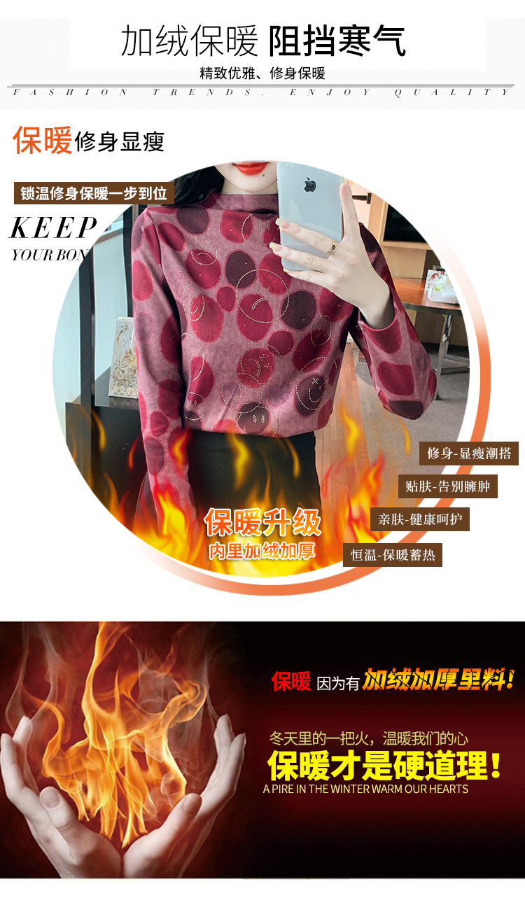 半高领印花时尚植绒t恤,高级感显瘦上衣KQL-323H728