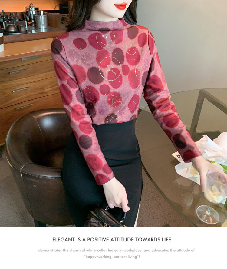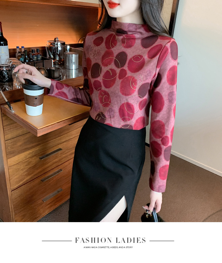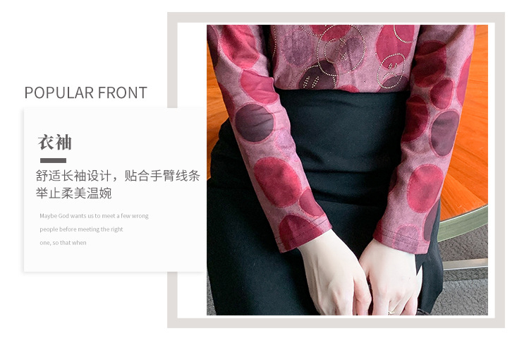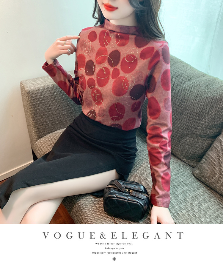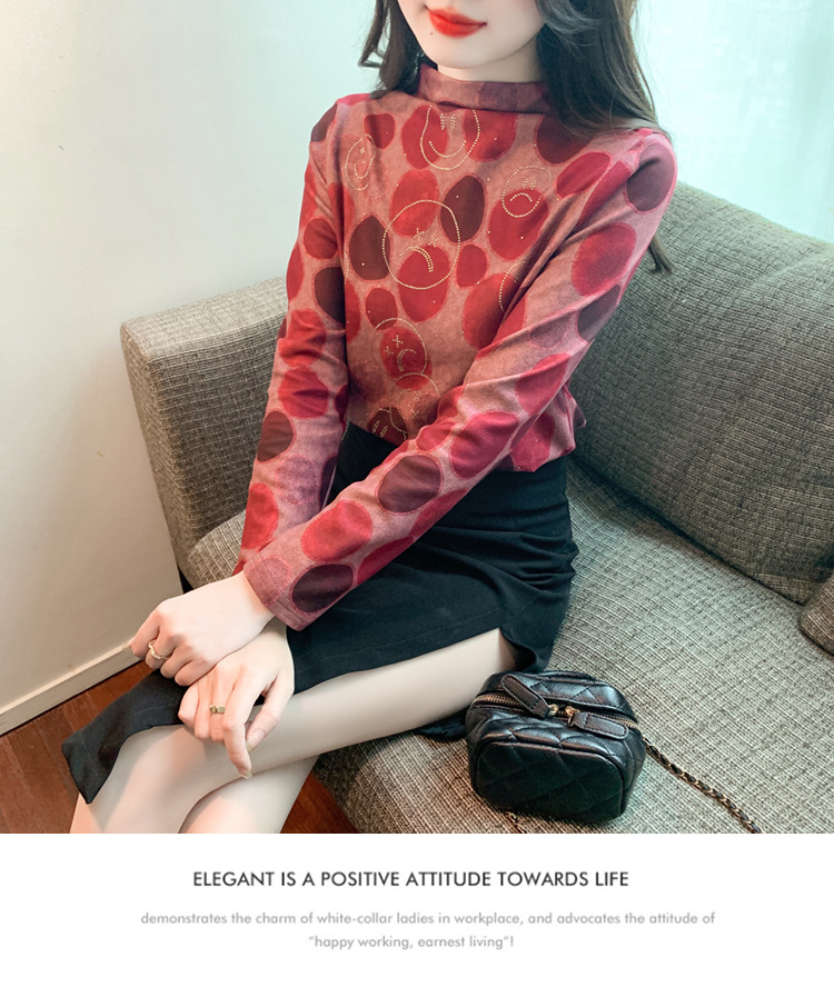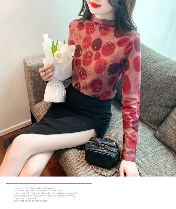 半高领印花时尚植绒t恤,高级感显瘦上衣KQL-323H728