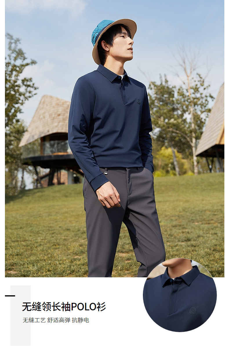 【无缝工艺】柒牌男士polo衫秋季新款时尚休闲抗静电弹力翻领T恤 127T70650