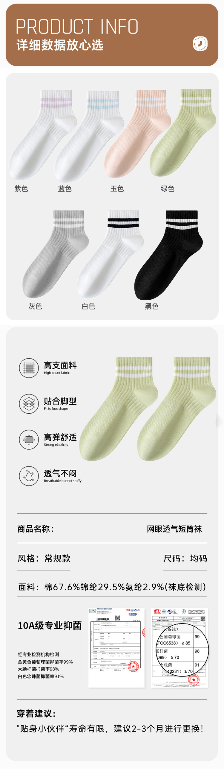 女士网眼透气短筒袜