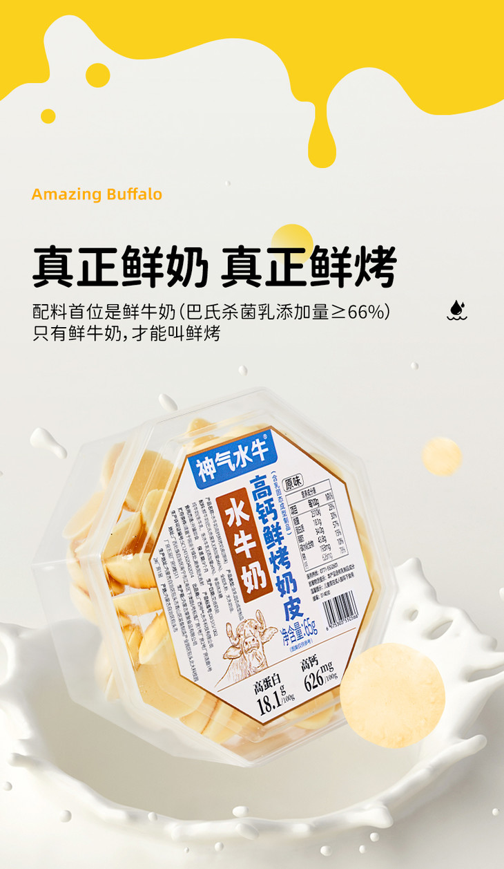 神气水牛高钙鲜烤奶皮 内蒙古特产营养酥脆奶香浓郁烤奶皮子 办公室居家下午茶零食解馋 65g/罐