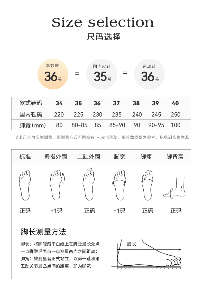 【注意事项】换货需要扣除-10元/件及偏远加收运费,鞋底磨损及其他影响二次销售情况,无法退换货。