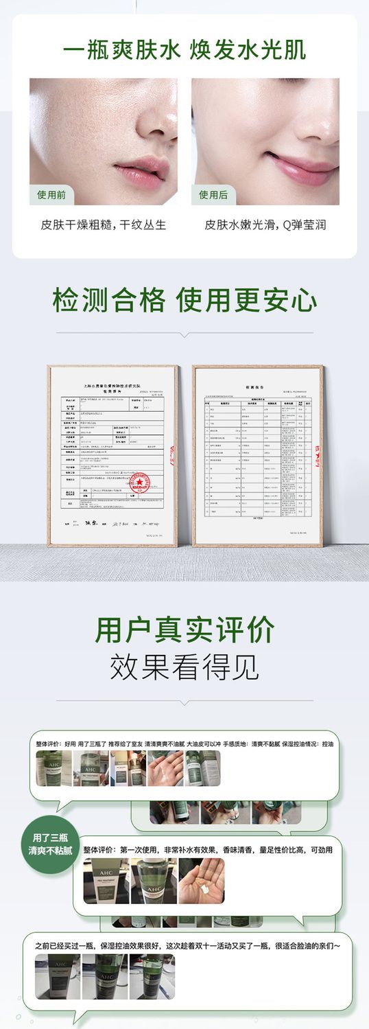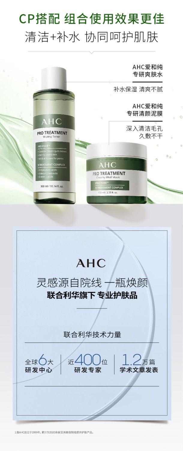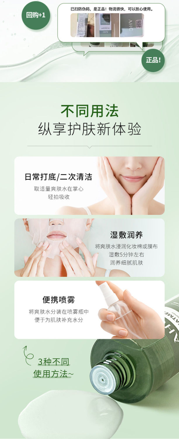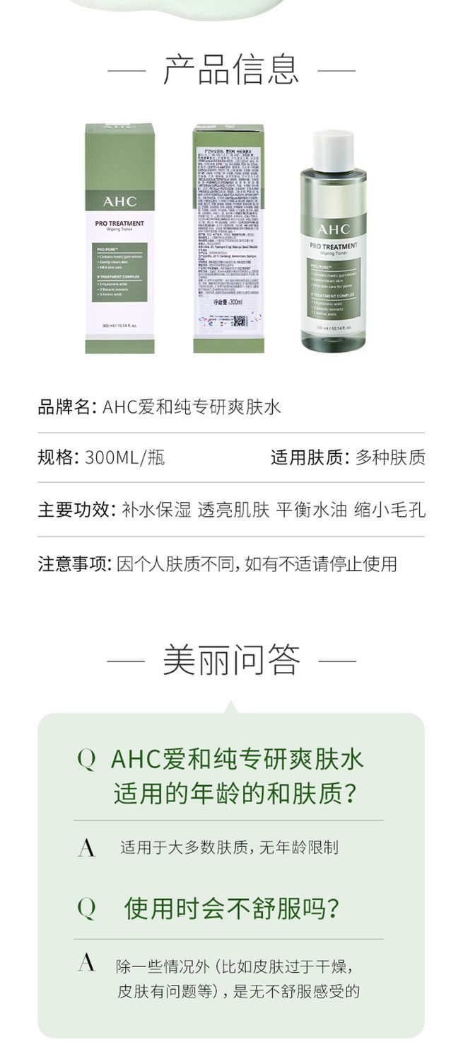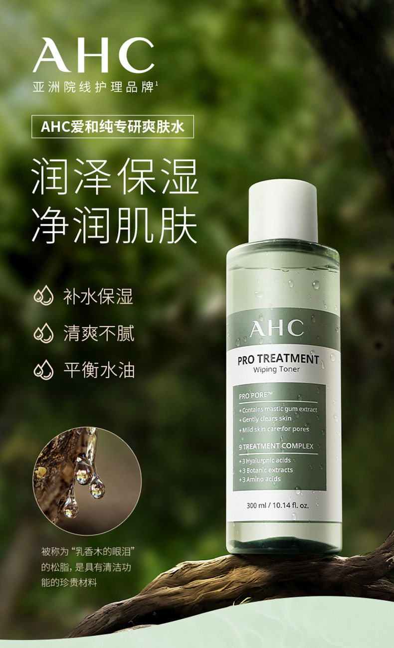 【预售 急单慎拍】AHC爽肤水湿敷清爽补水保湿爽肤水化妆水300ML水润不刺激草本精粹
