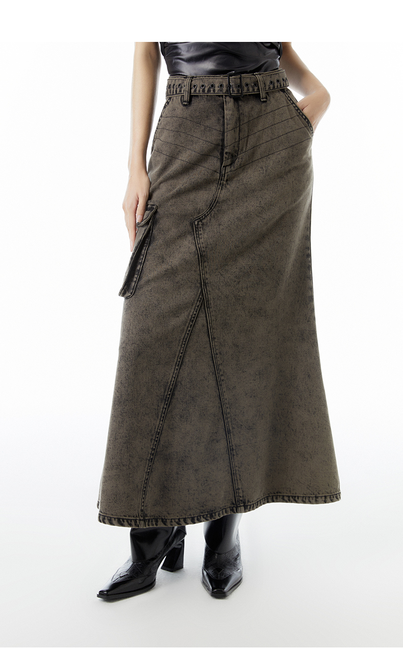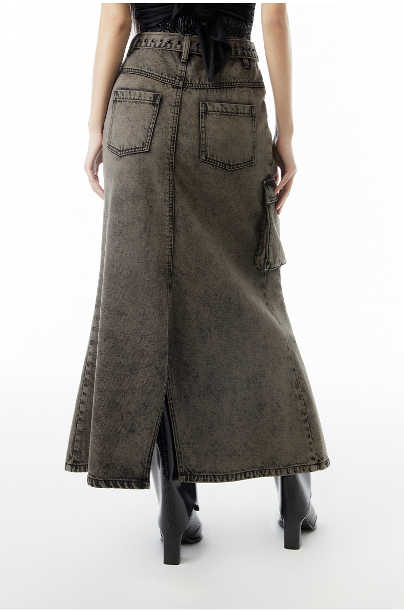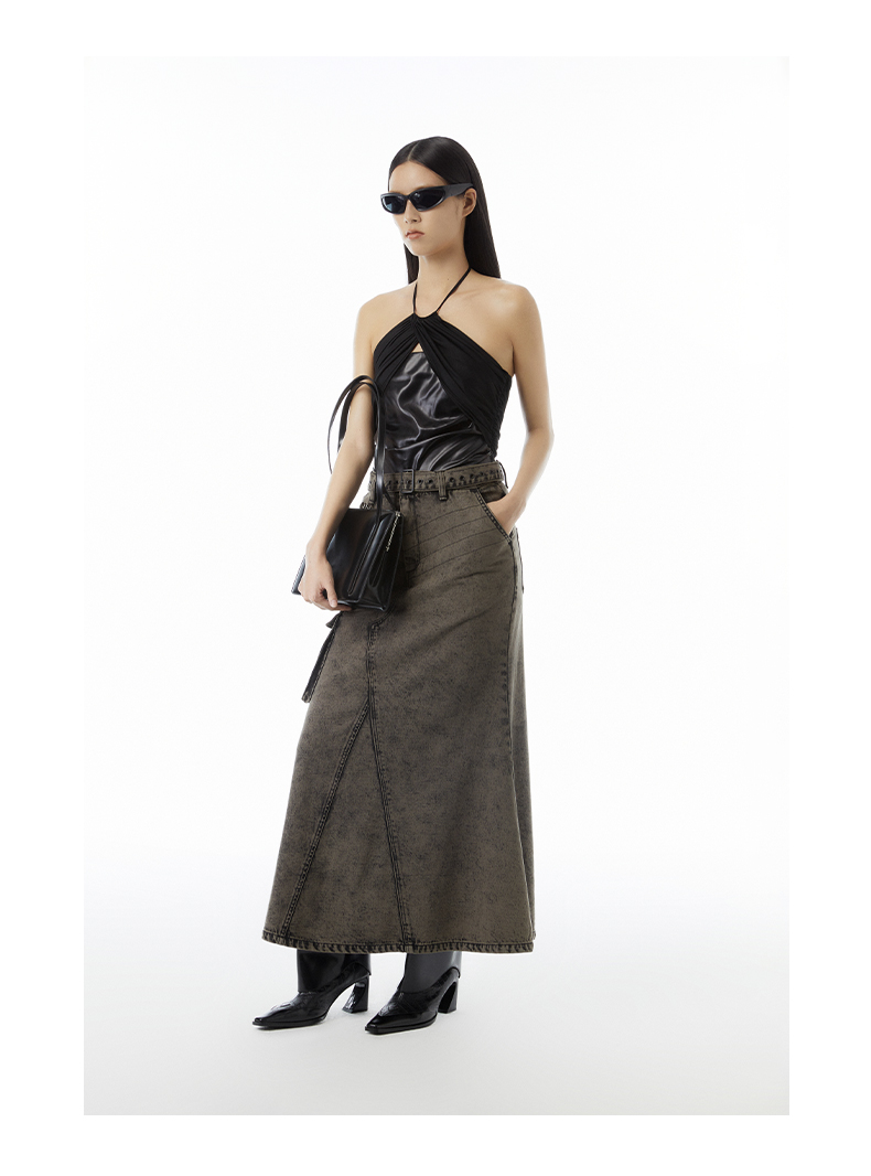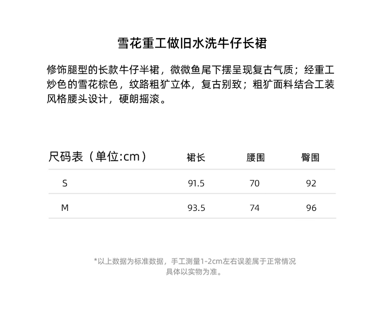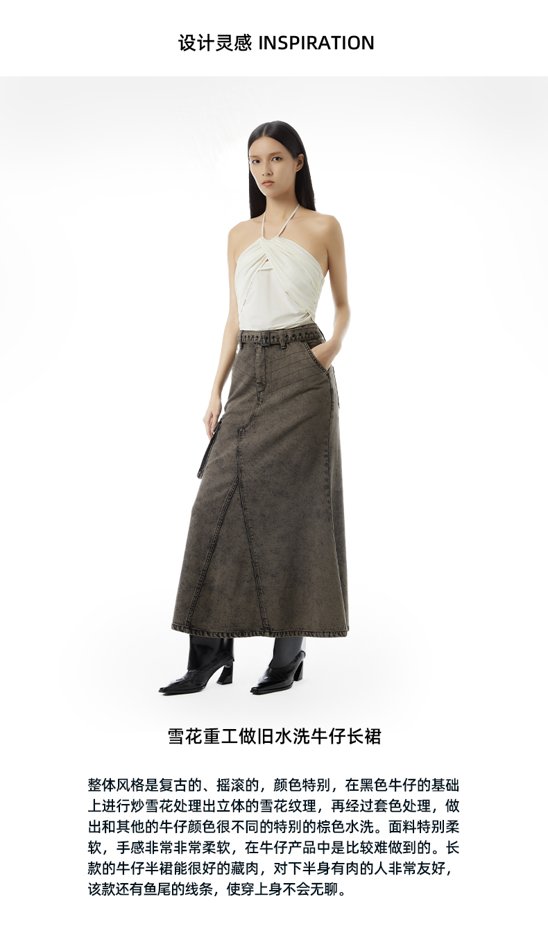 lost in echo 2023春夏新款Ari系列雪花重工做旧水洗牛仔长裙