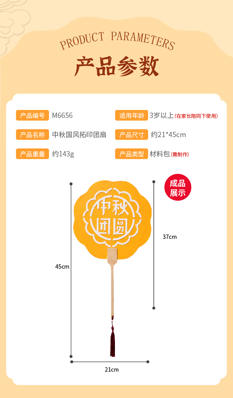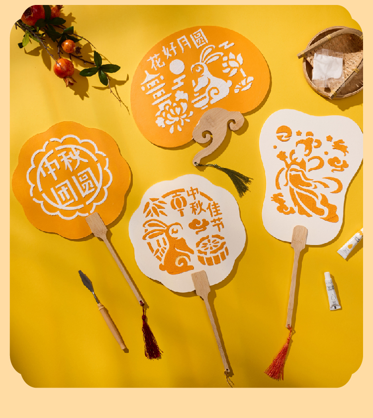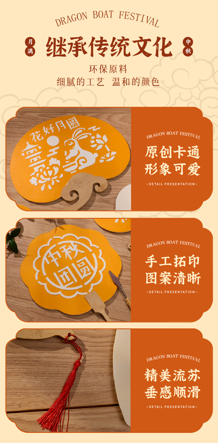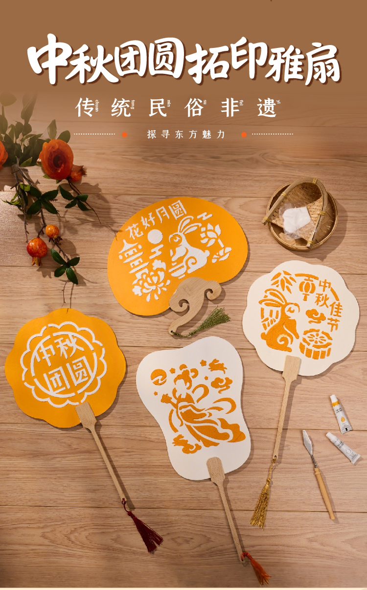 中秋节活动手工diy团圆拓印雅扇儿童制作材料包团建幼儿园团扇子