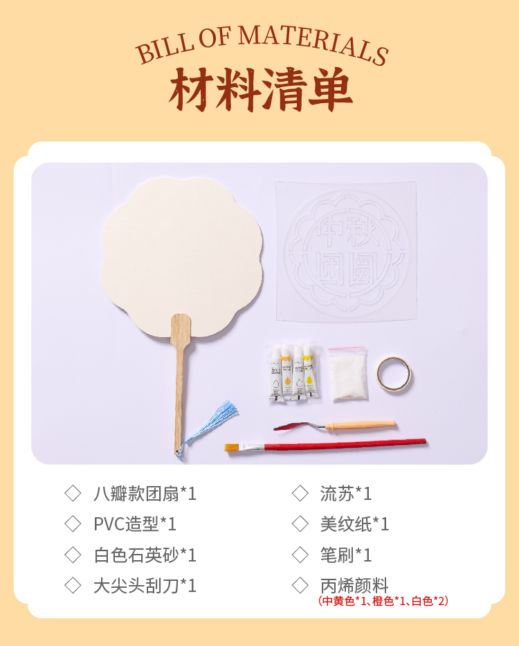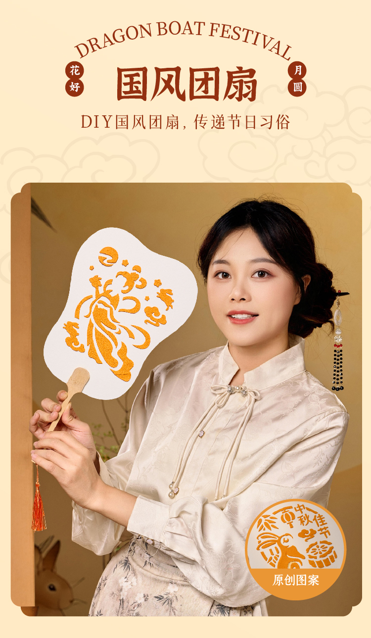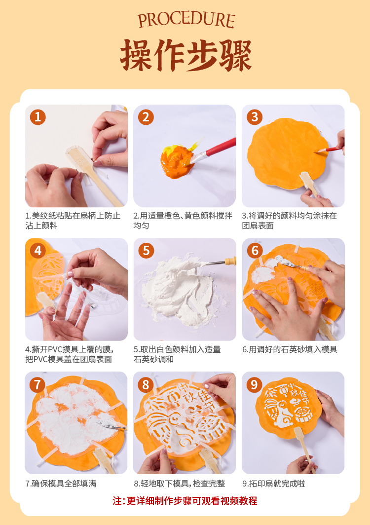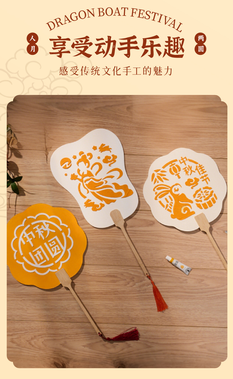 中秋节活动手工diy团圆拓印雅扇儿童制作材料包团建幼儿园团扇子