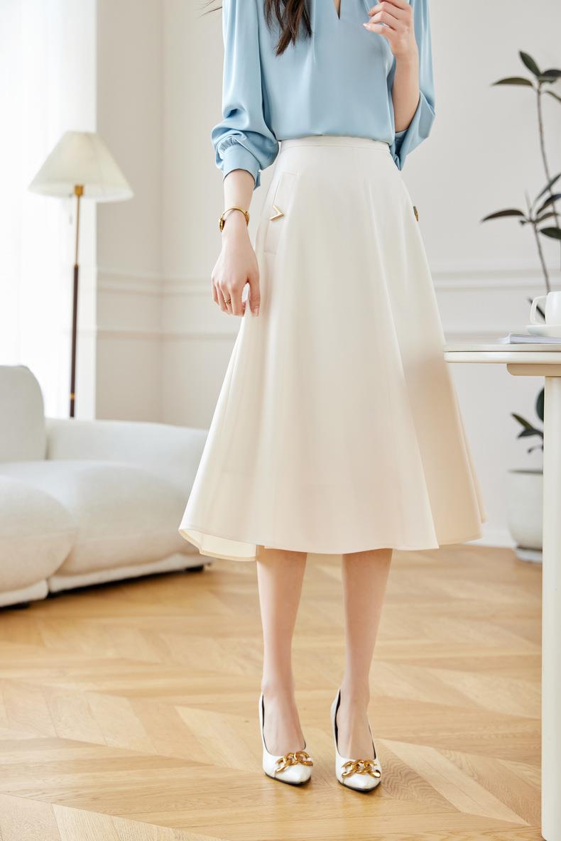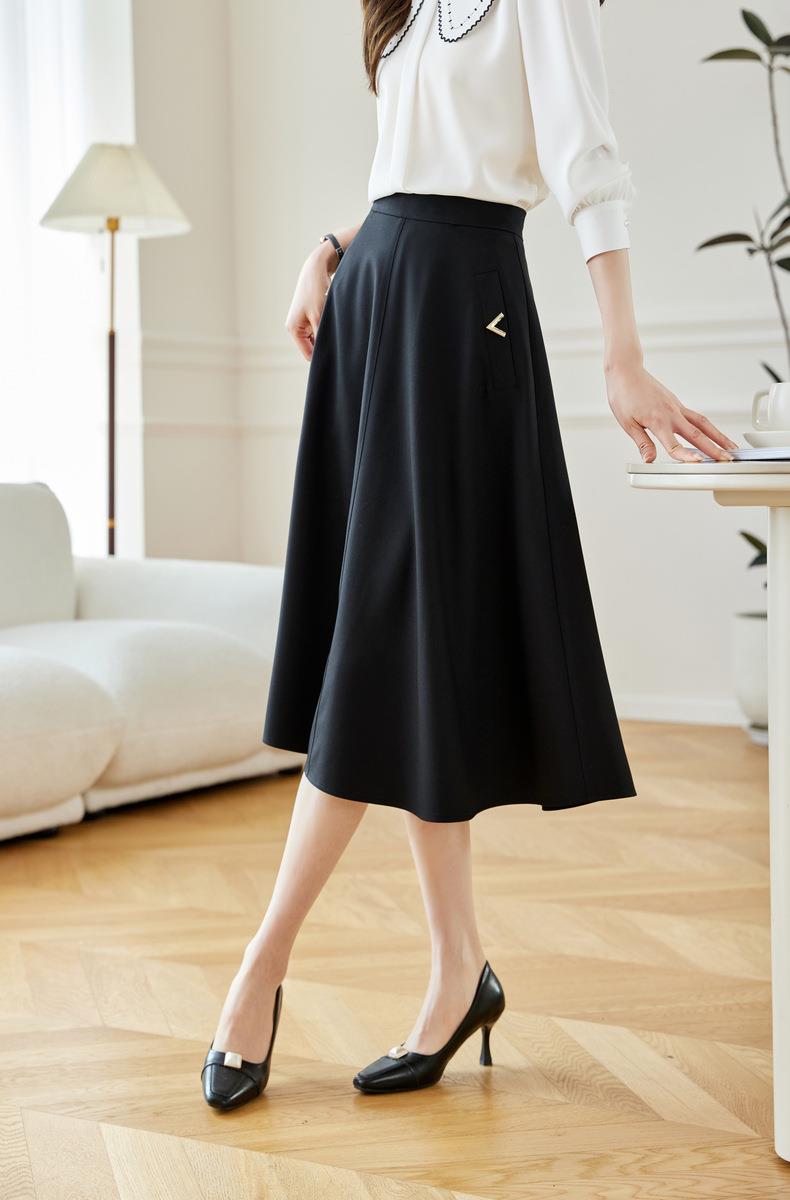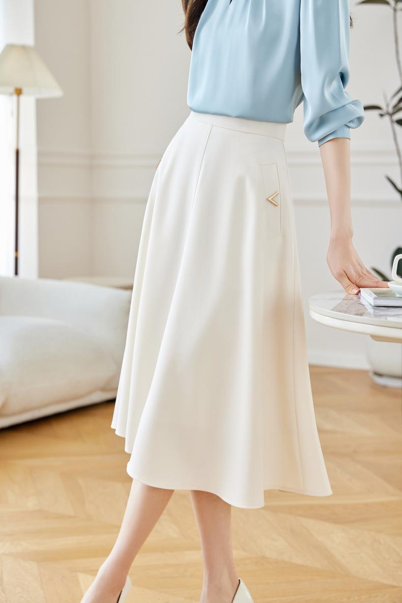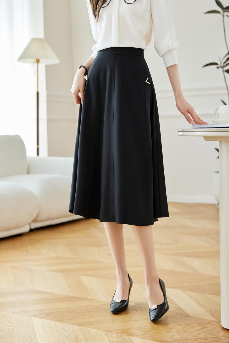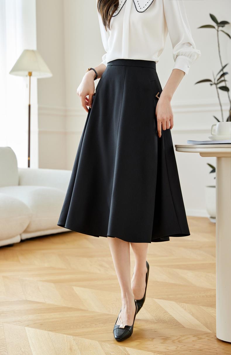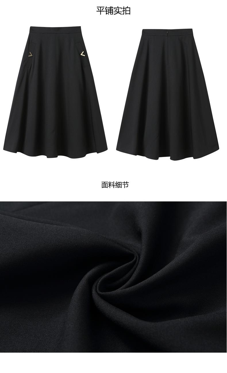 2024春装新款V字金属装饰中长款半身裙高腰显瘦大摆伞裙601