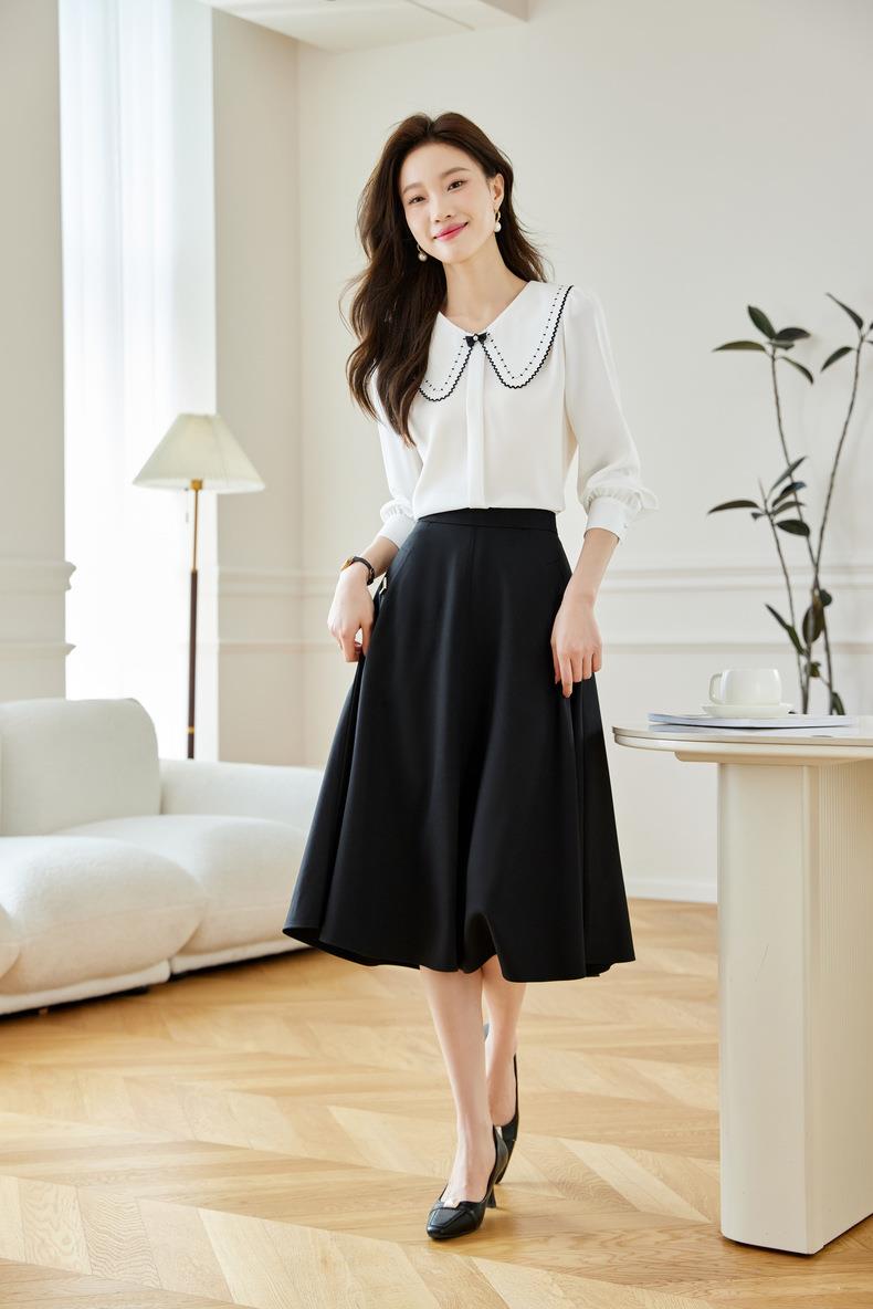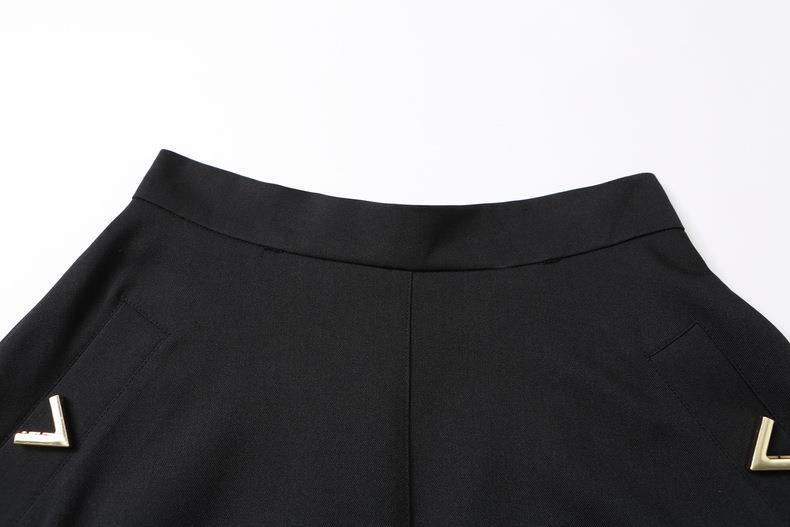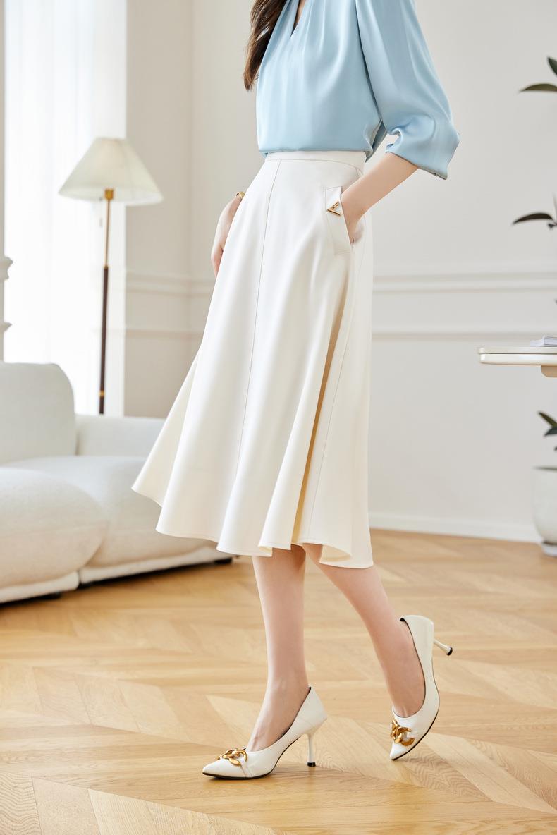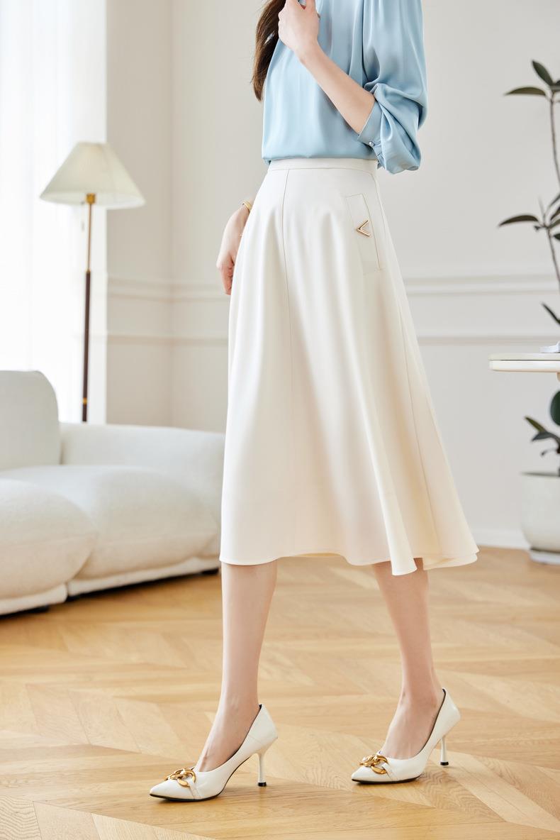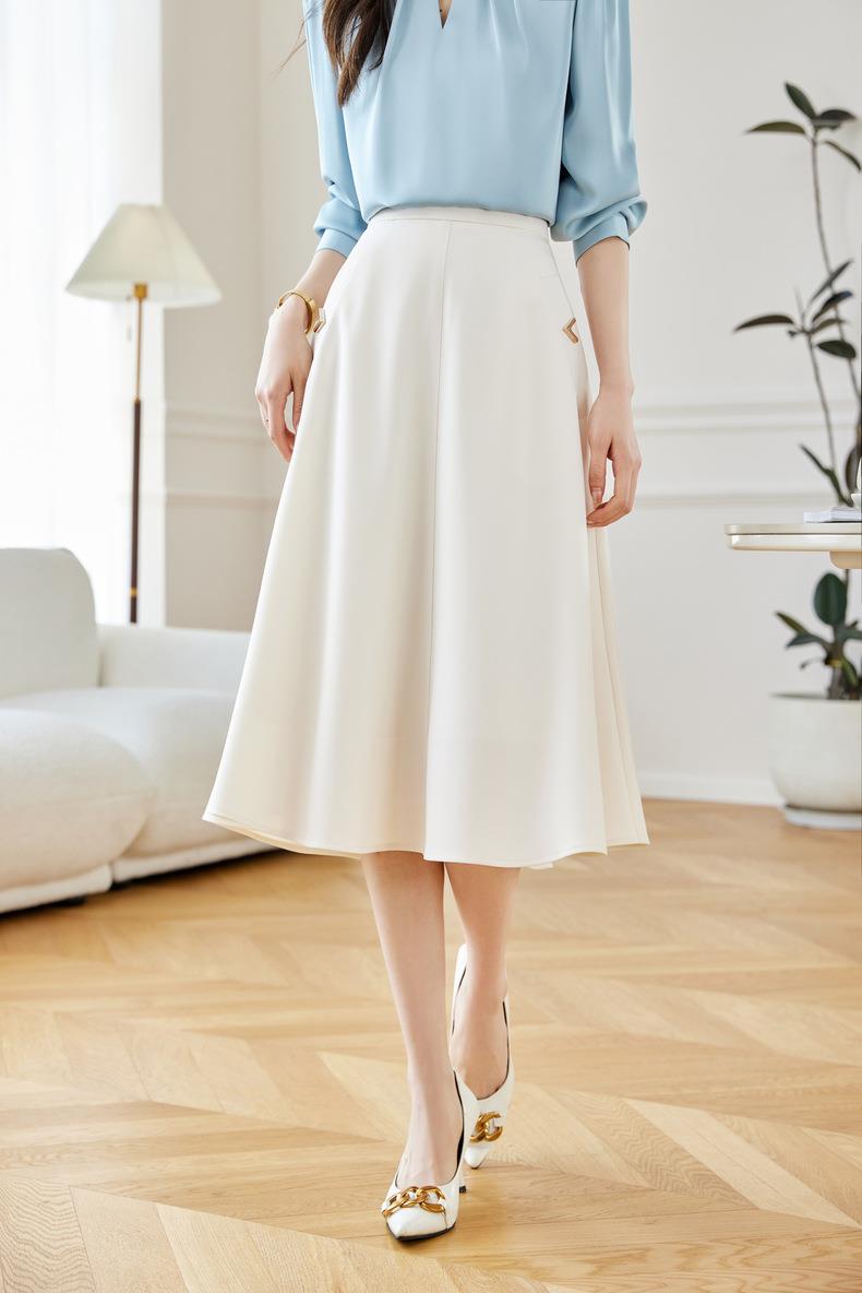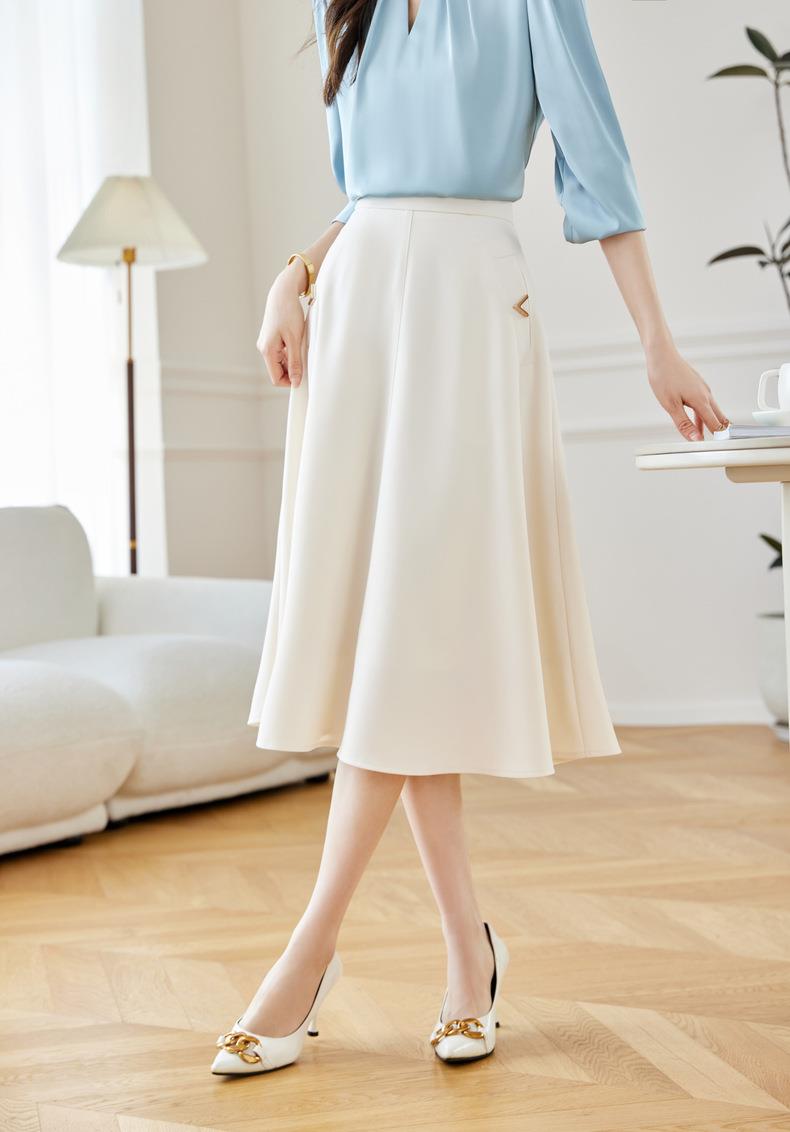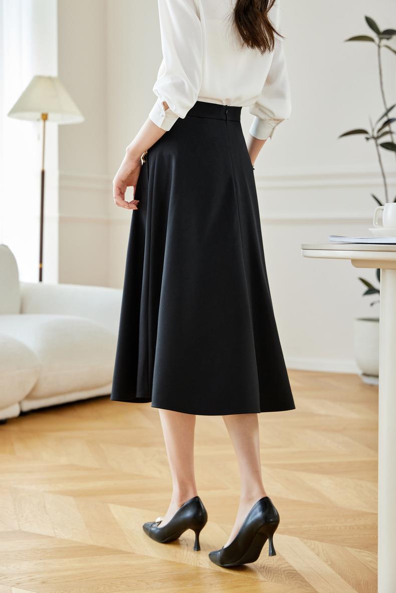 2024春装新款V字金属装饰中长款半身裙高腰显瘦大摆伞裙601