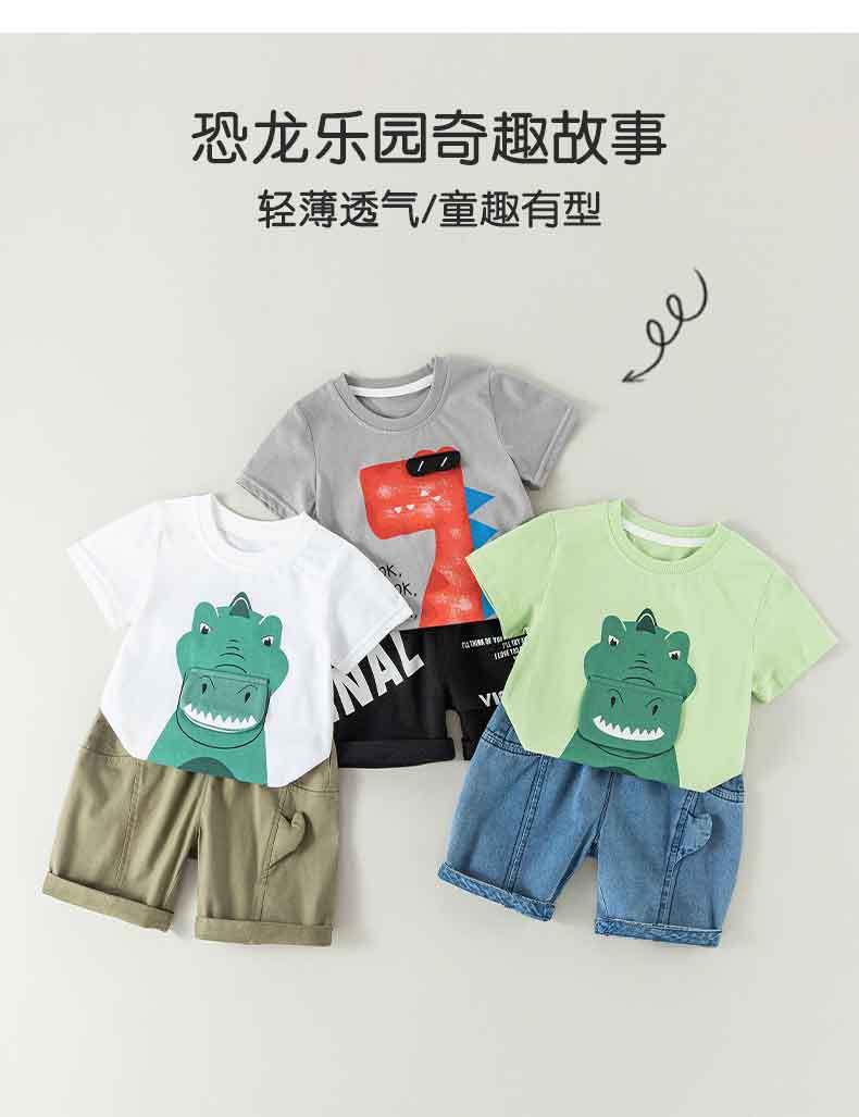男童t恤夏季薄款宝宝卡通恐龙短袖上衣小童韩版半袖夏装儿童体恤a
