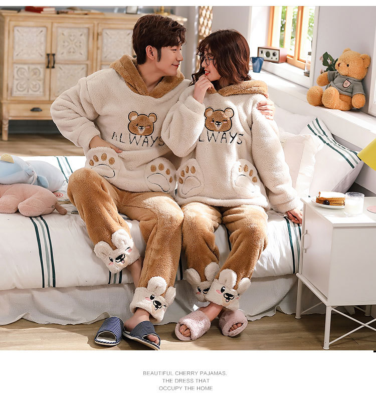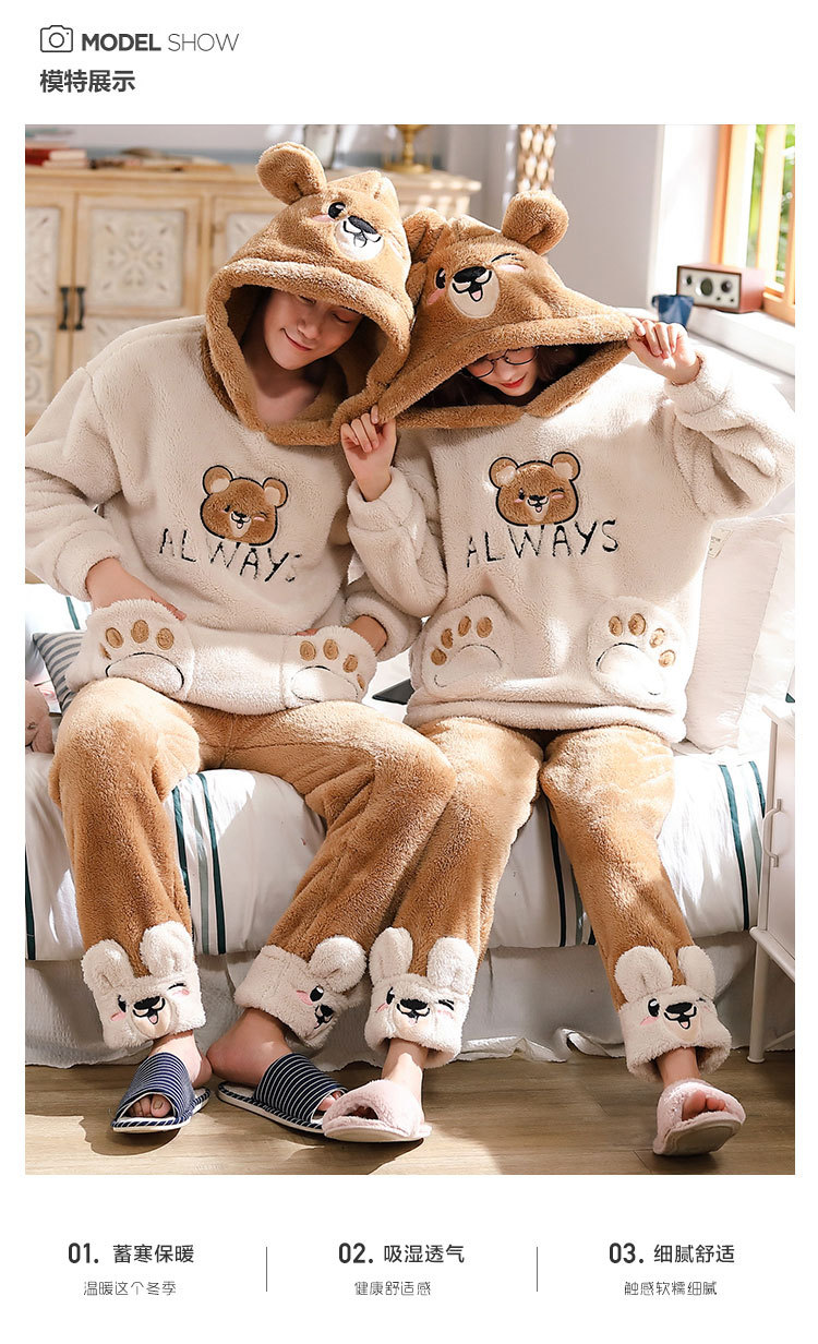 情侣睡衣女生秋冬季珊瑚绒冬天加厚加绒保暖法兰绒家居服男士套装圣诞礼物