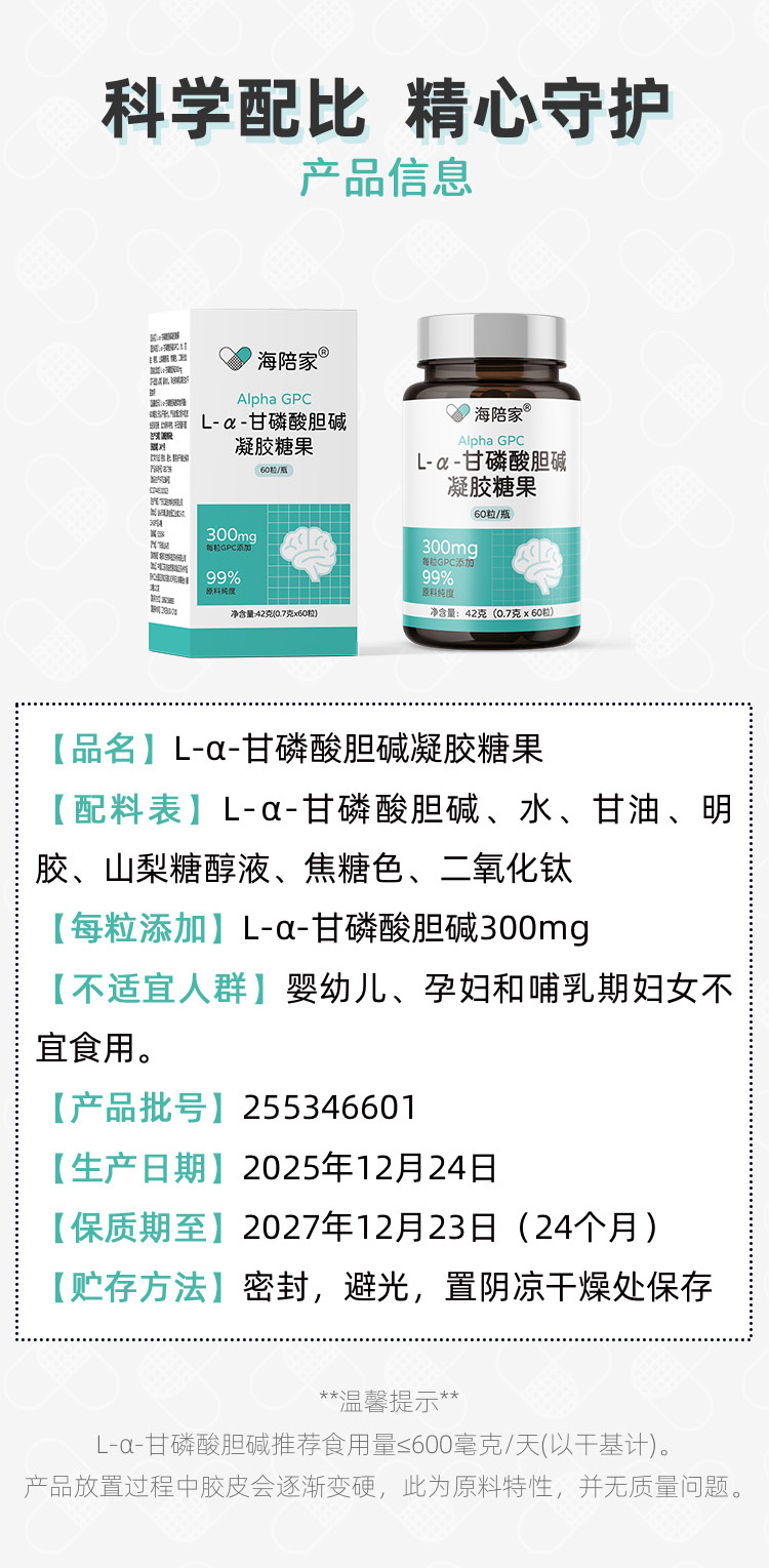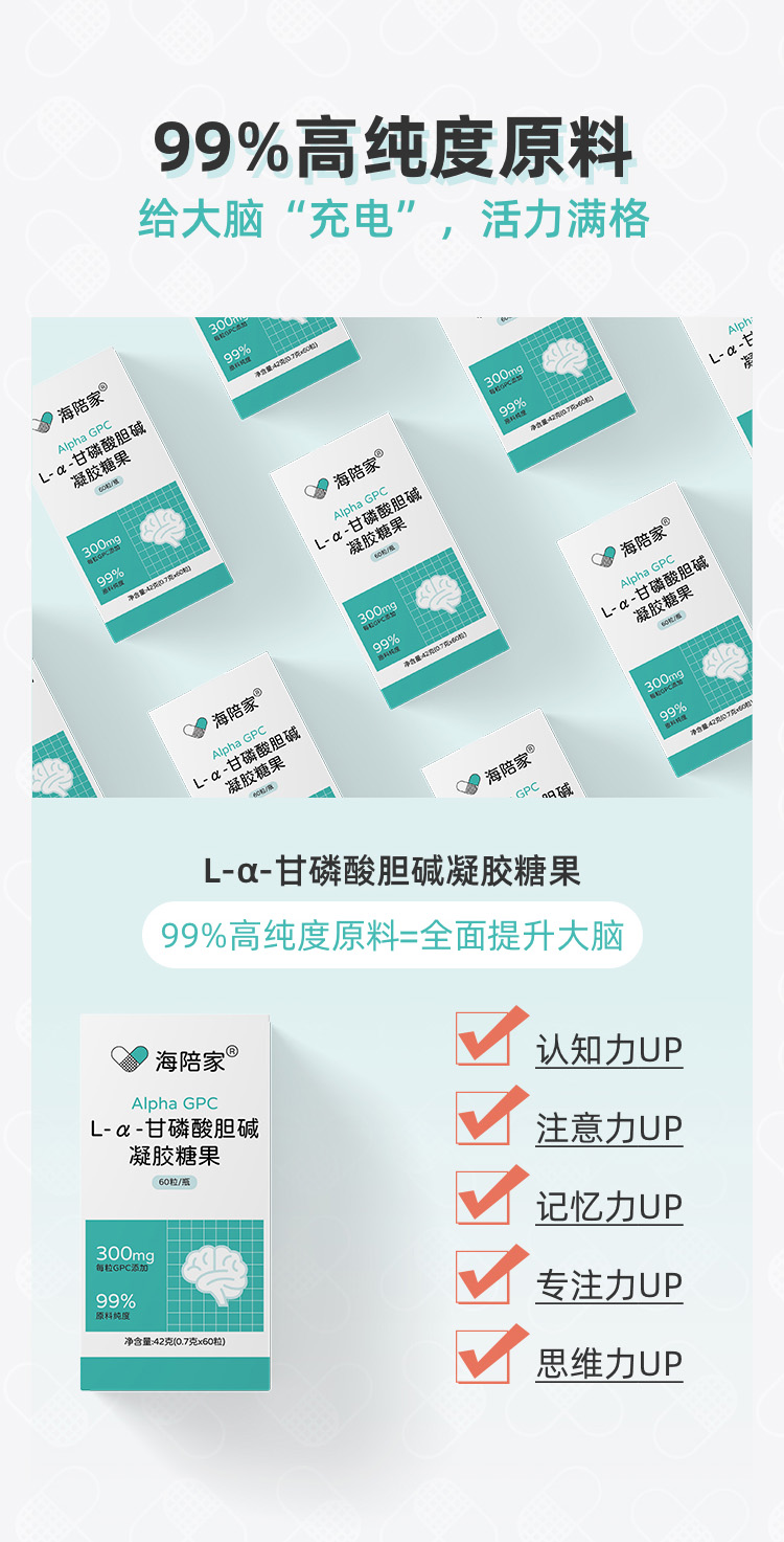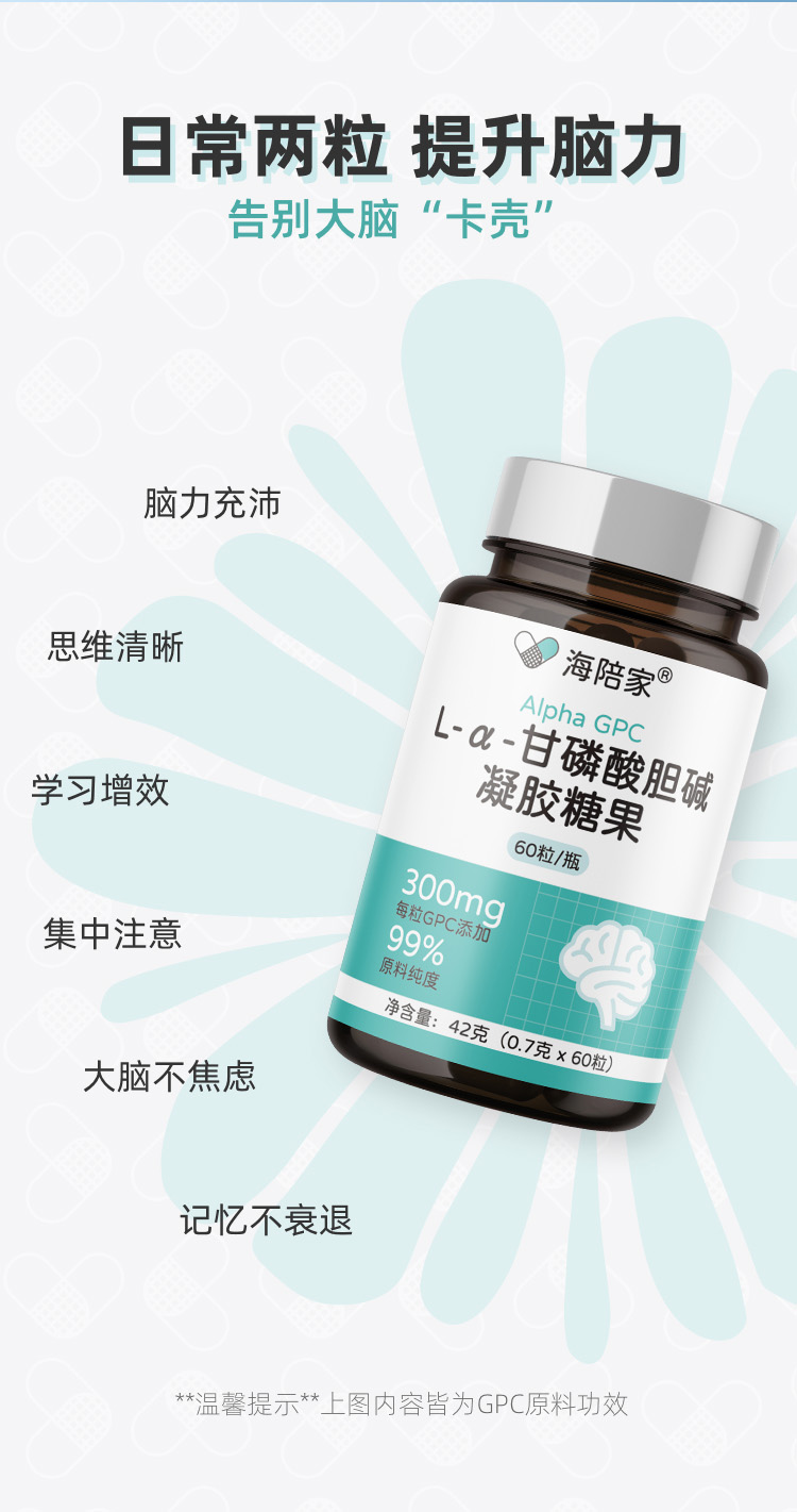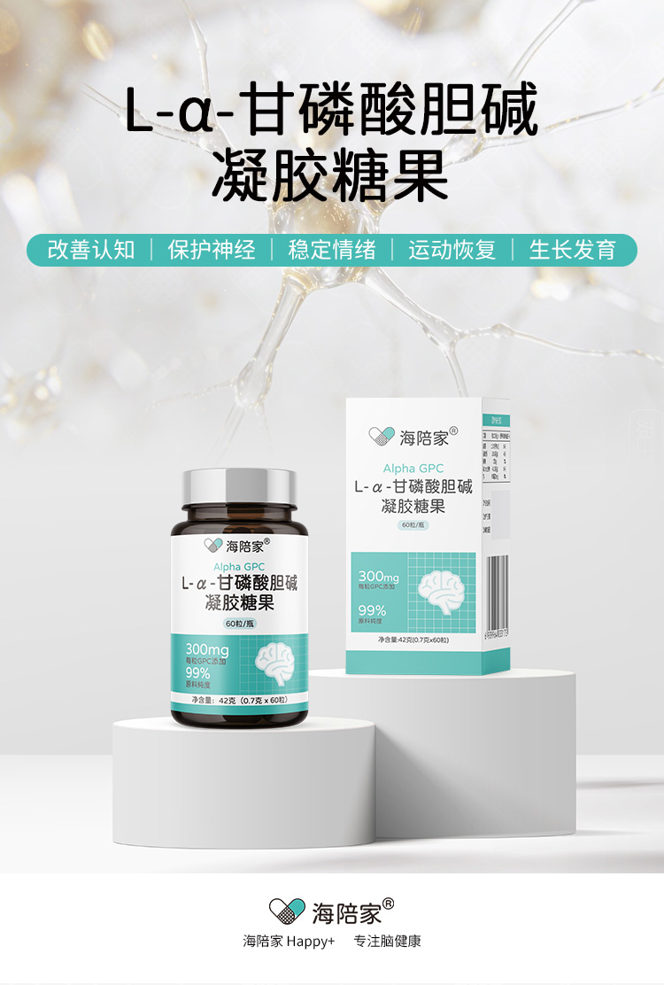 海陪家 L-α-甘磷酸胆碱(GPC)凝胶糖果 60粒/盒 卫健委批准新食品原料 口味甘甜好吞服 方便携带小巧胶囊