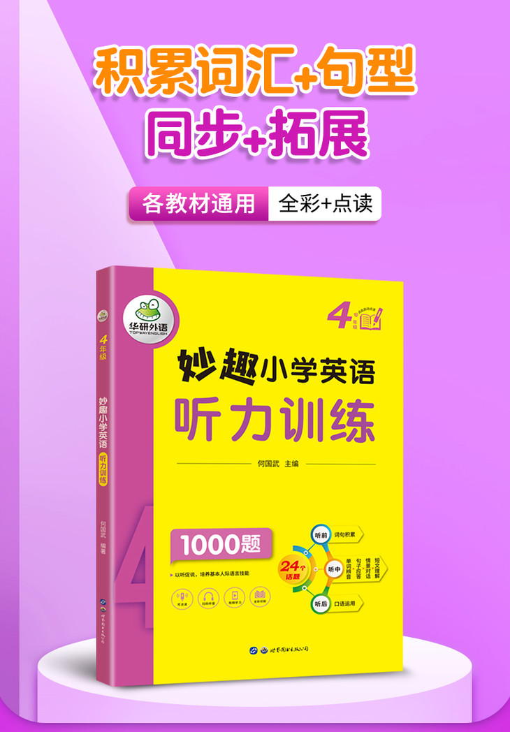 2025秋 妙趣小学英语四年级听力训练1000题 全国通用版同步4年级教材理解拓展学科知识 华研外语一二三四五六123456年级剑桥KET/PET/托福系列