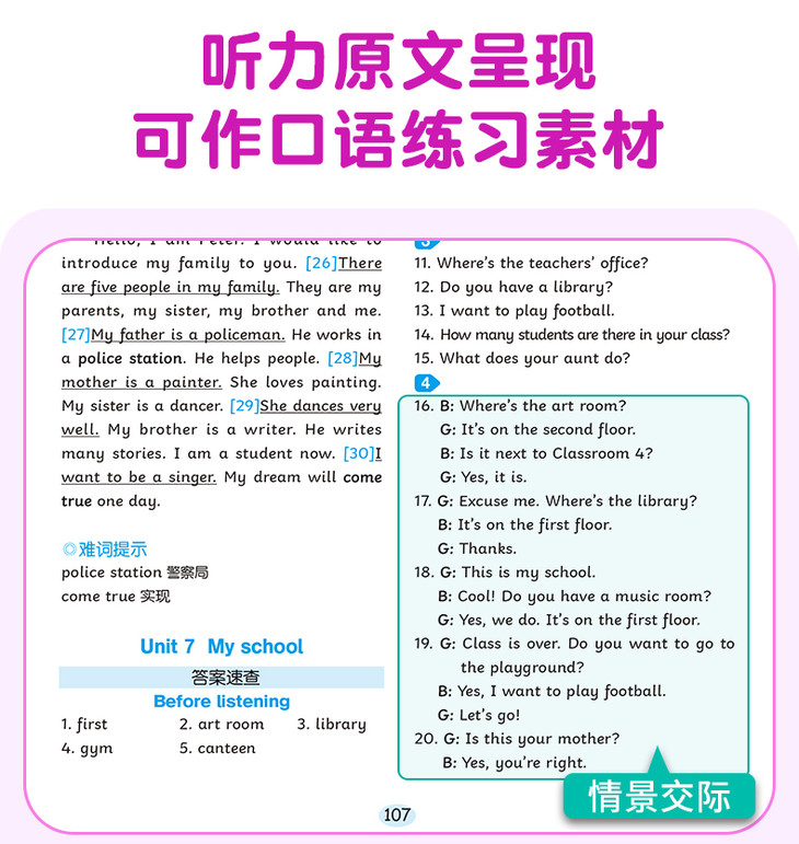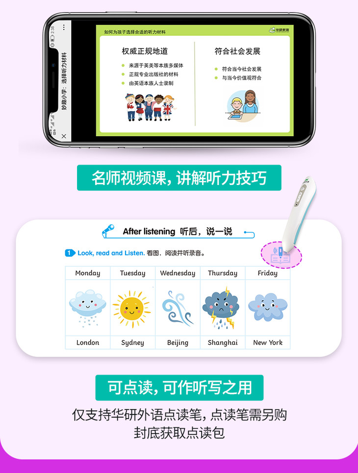 5.听力音频由北美外教录音,发音标准,语速适中,既可作为听力训练的素材,也可进行跟读模仿。可搭配点读笔使用(点读笔需另购);
