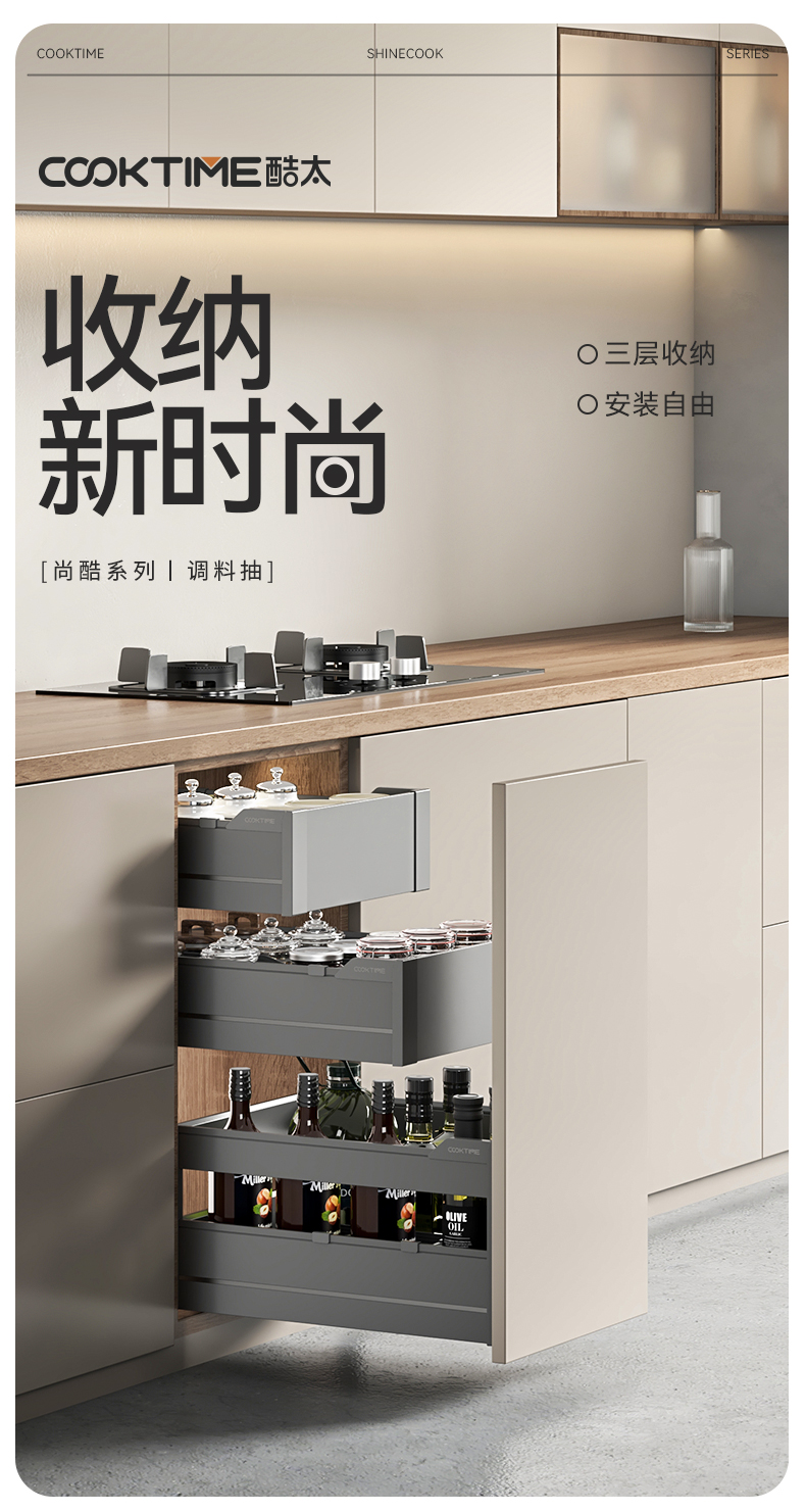 - 酷太坚持8年自主研发,已获得专利证书130项,拥有一套领先市场的厨房收纳系统,为千万中国家庭解决厨房脏乱差,缔造厨房新生活。