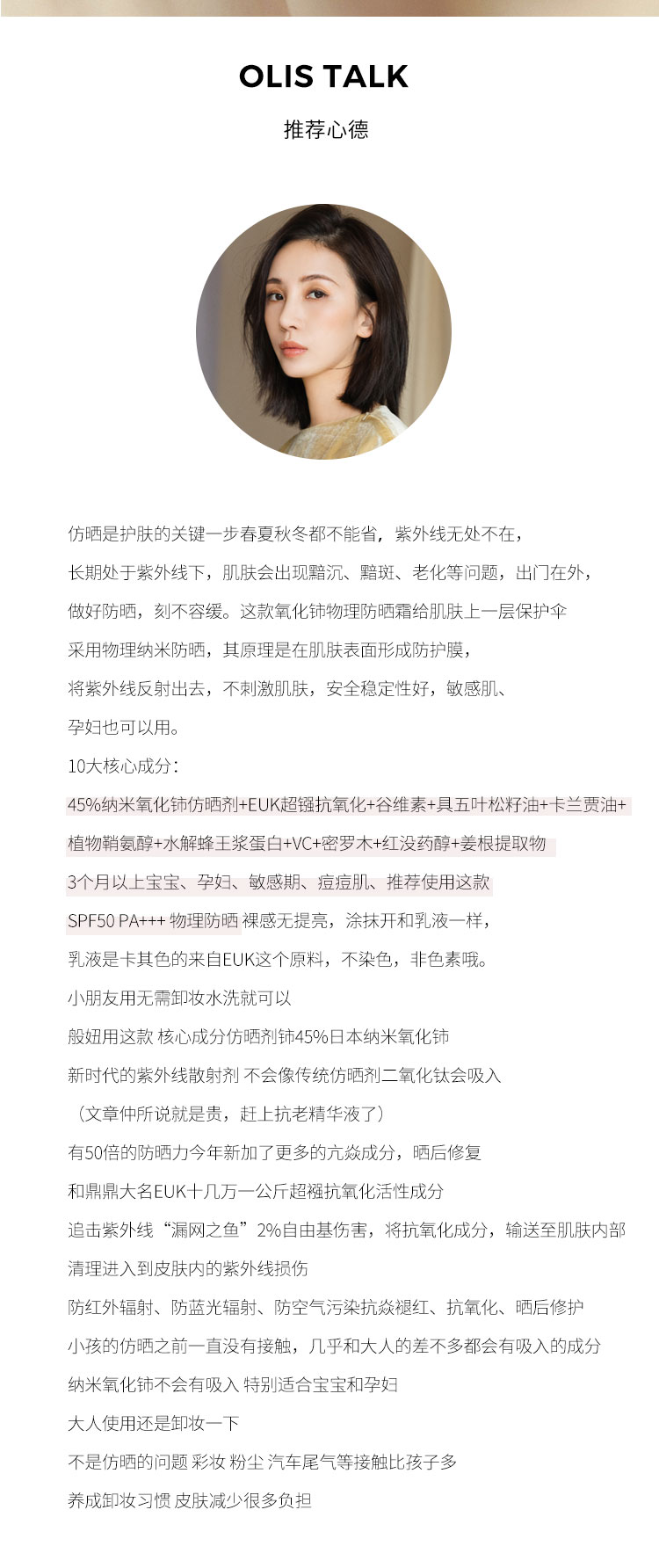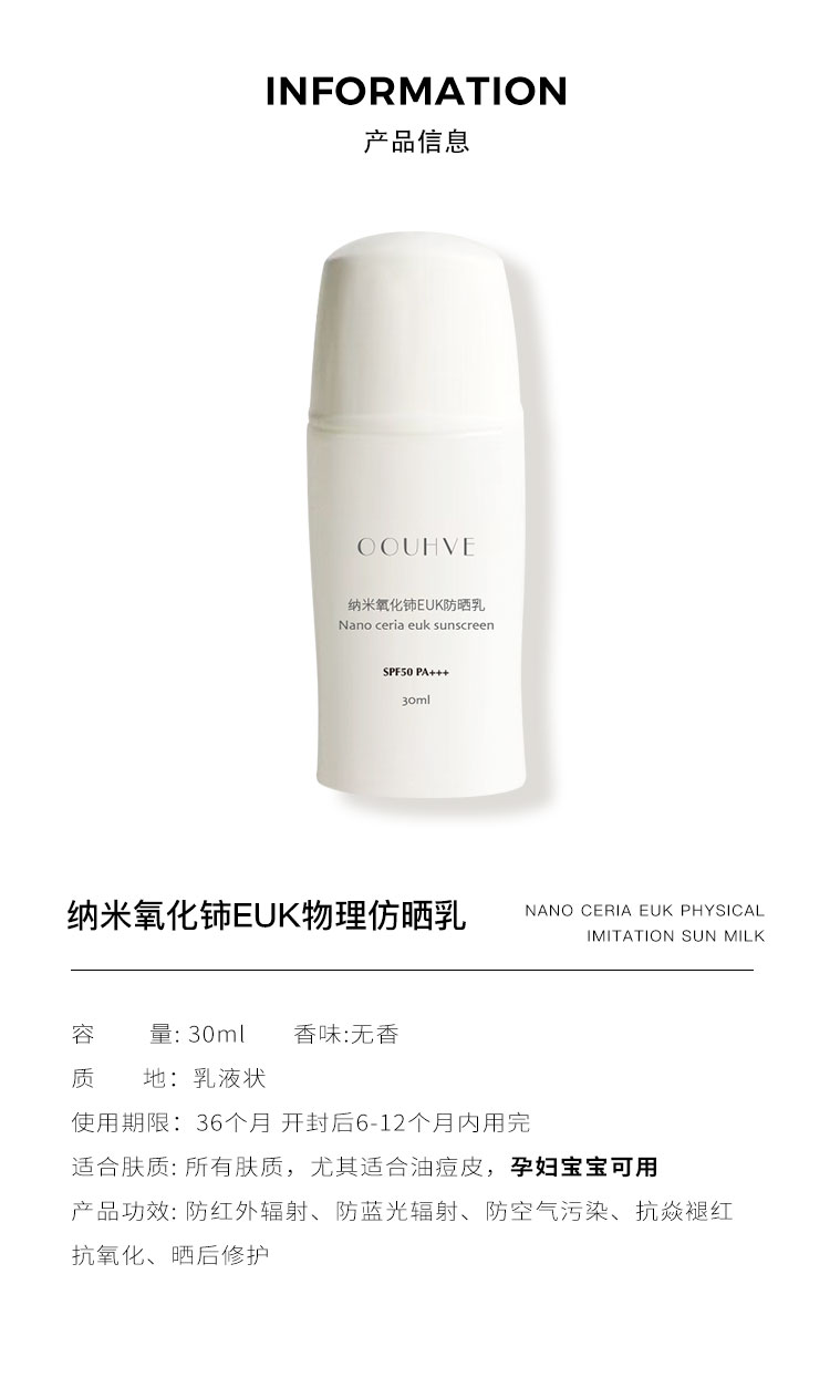 纯物理防晒|纳米氧化铈+超強抗氧EUK护肤3个月以上宝宝痘肌蓝光红外线辐射SPF50 PA+++(无需卸妆)