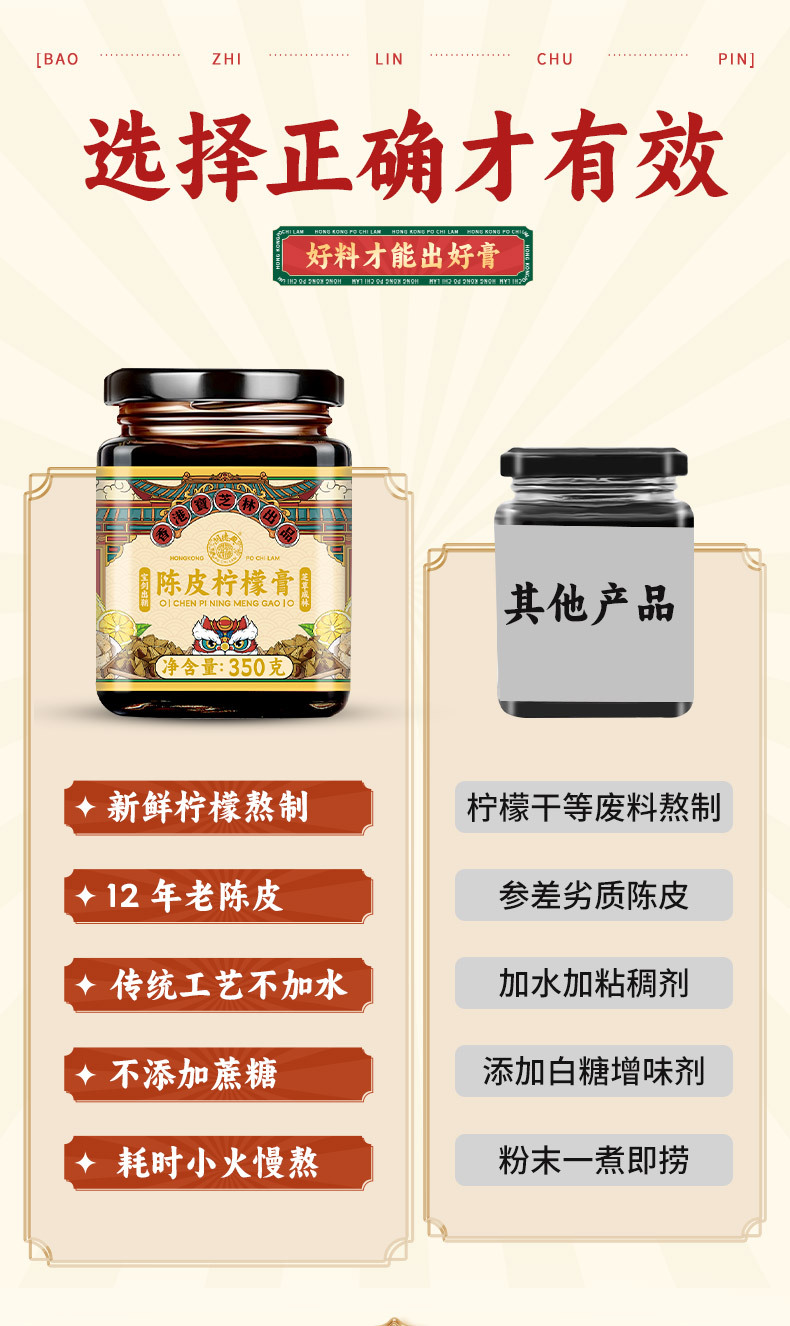 【香港宝芝林❗陈皮柠檬膏】甄选品质原料制作,优选添加12年陈皮,农家土蜂蜜,新鲜柠檬制作,四季常润在喉间,熬制秋冬儿童老人喉咙润喉蜂蜜滋养润喉L