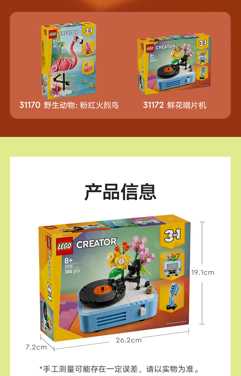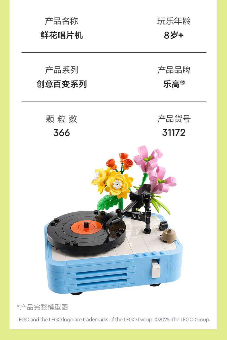 乐高LEGO 鲜花唱片机LEGC31172