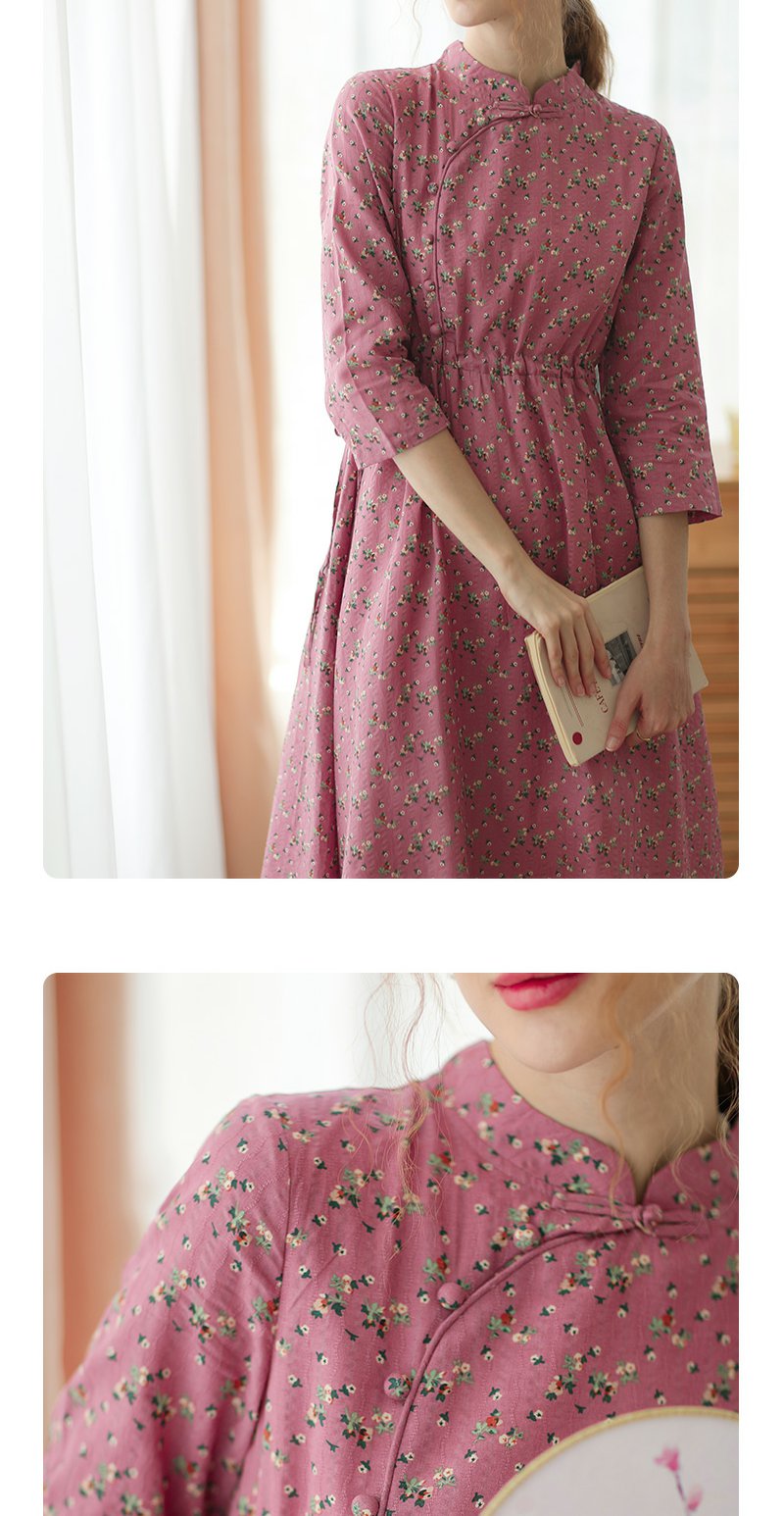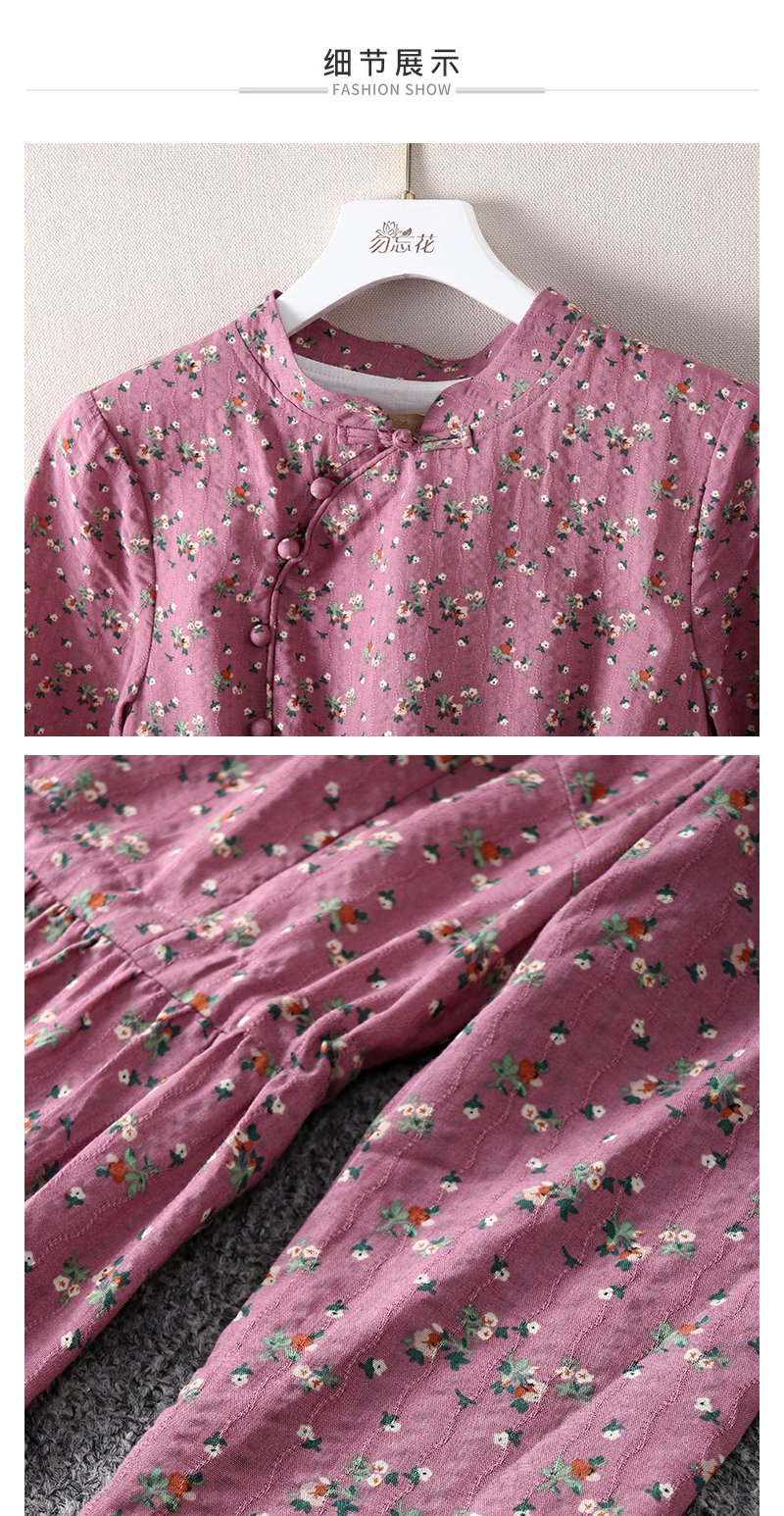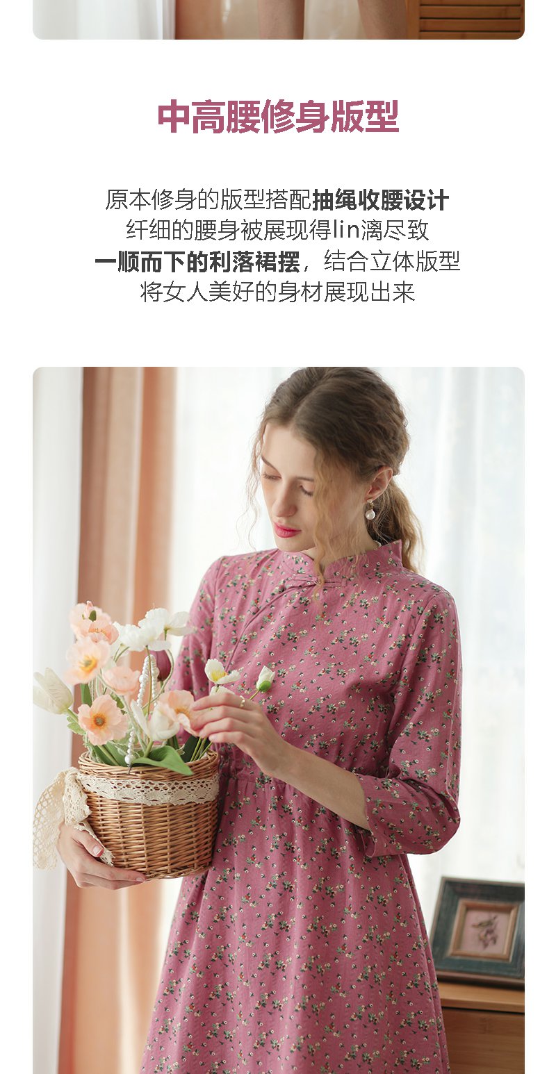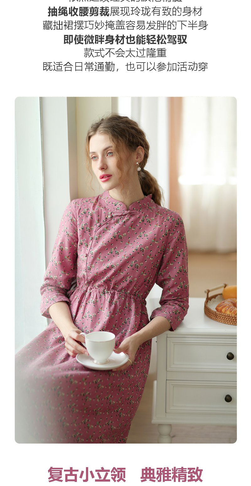 勿忘花碎花旗袍改良连衣裙女2024早秋季新款新中式裙子小众设计