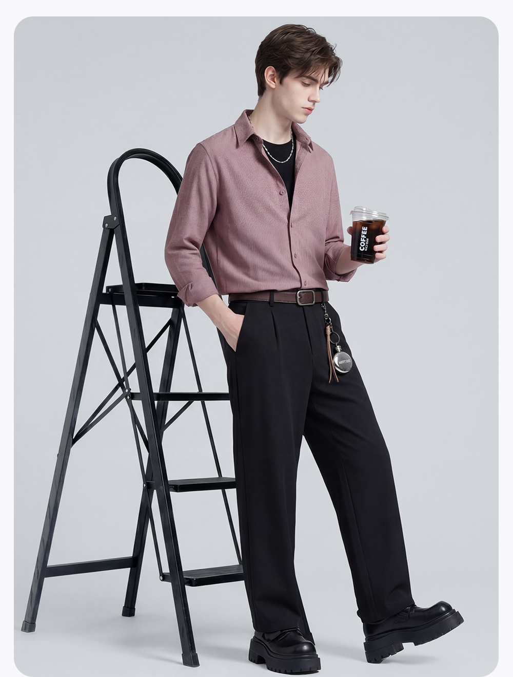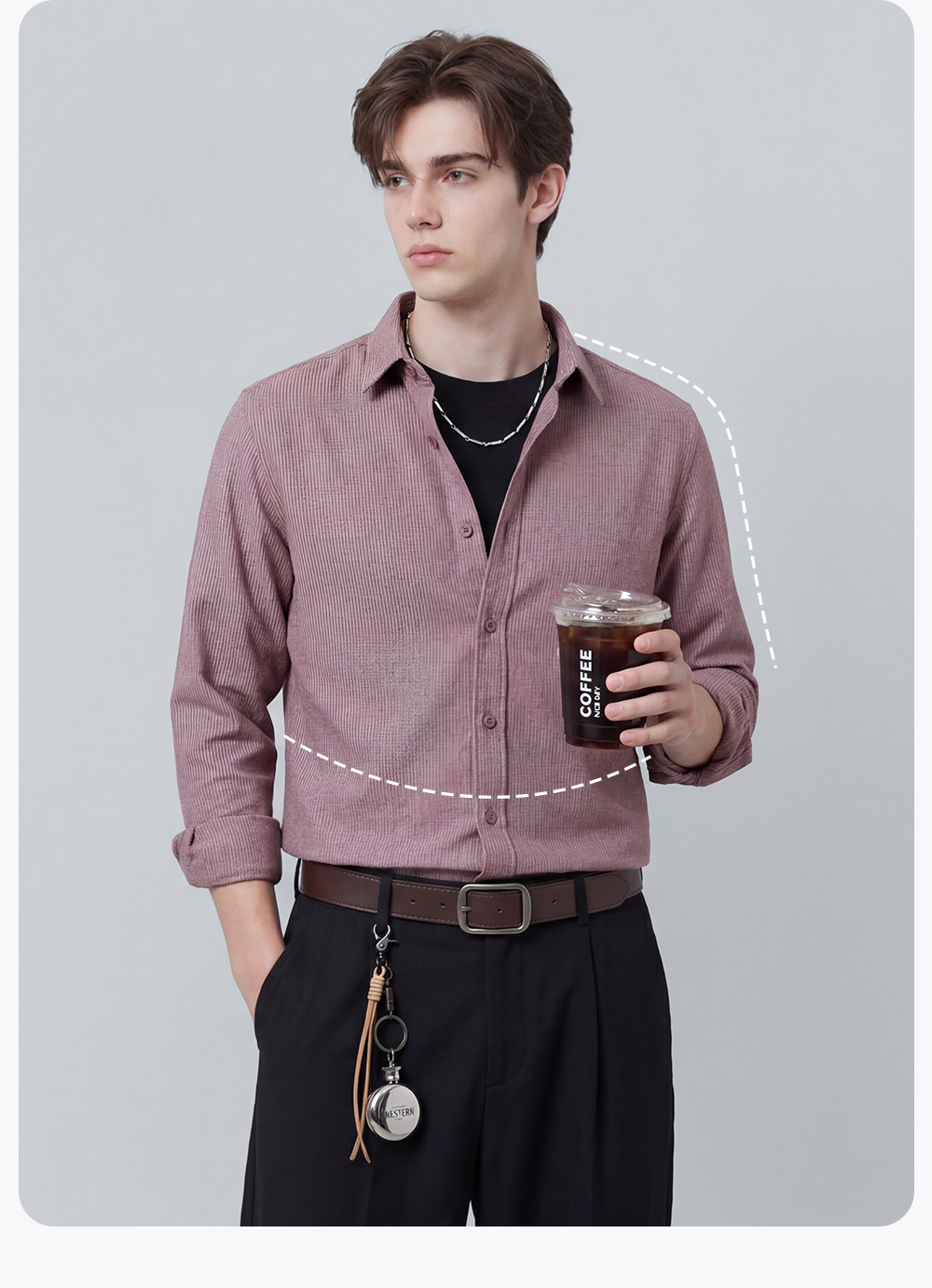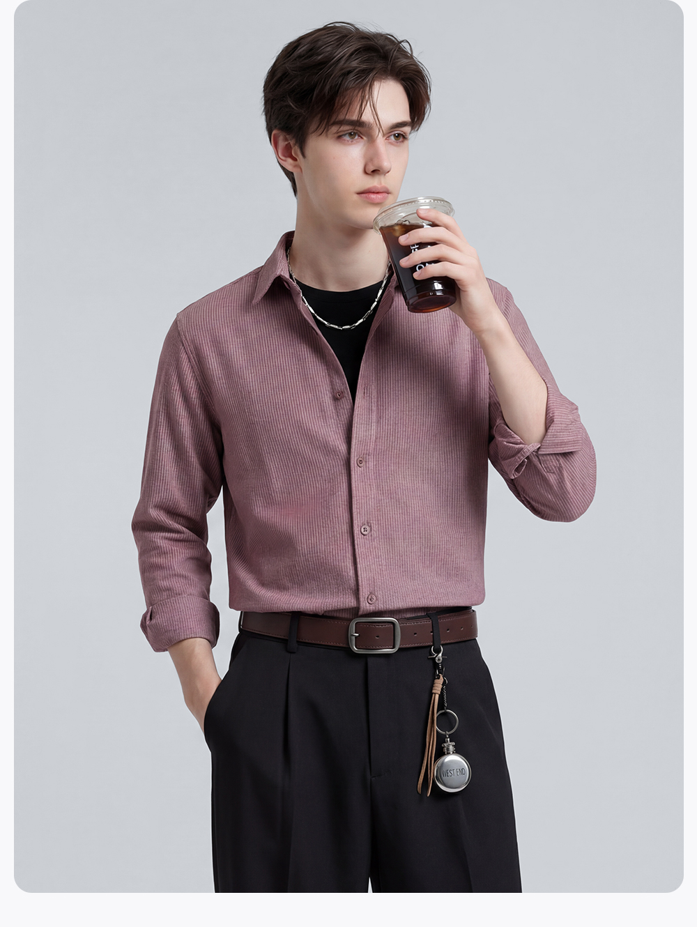圣得西衬衫男长袖2025春季新款帅气修身商务正装纯色职业白衬衣男