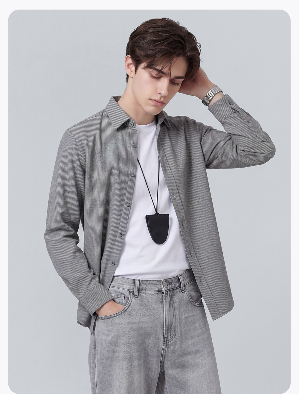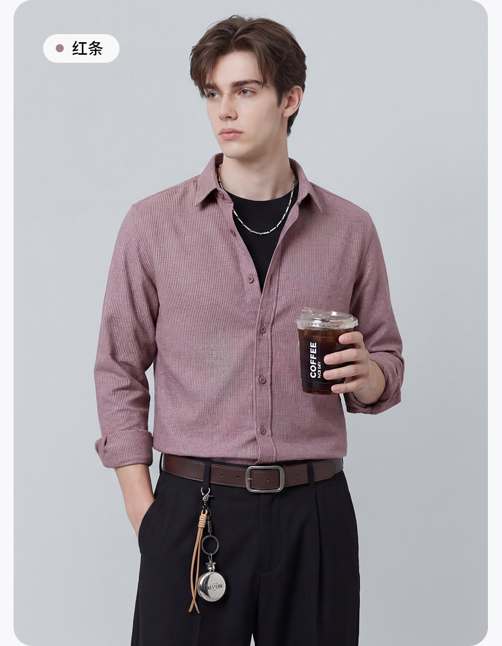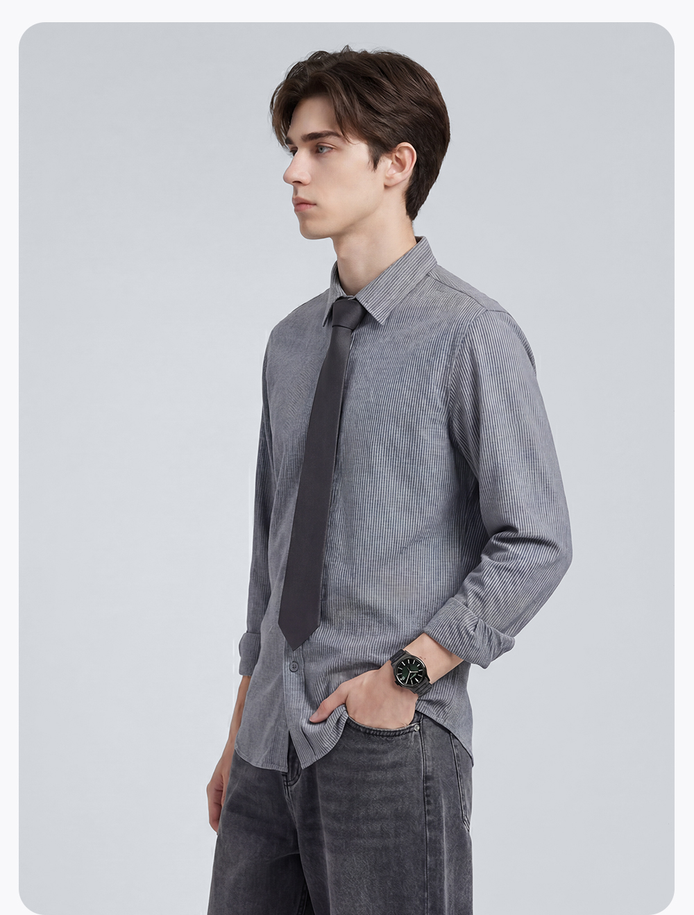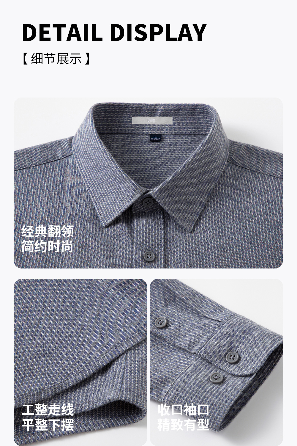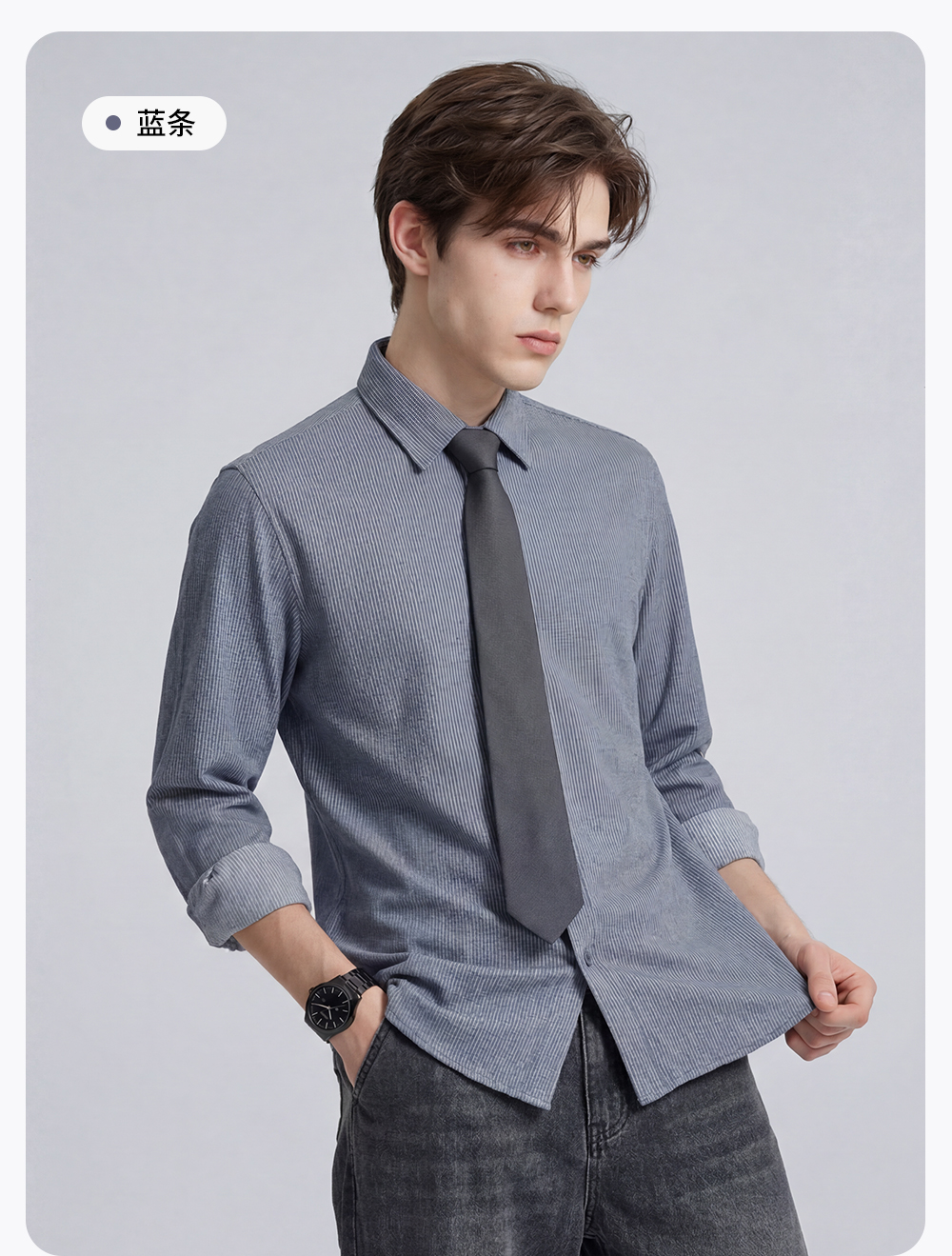 【含棉】圣得西条纹男士长袖衬衫2026新款春季商务风简约时尚上衣