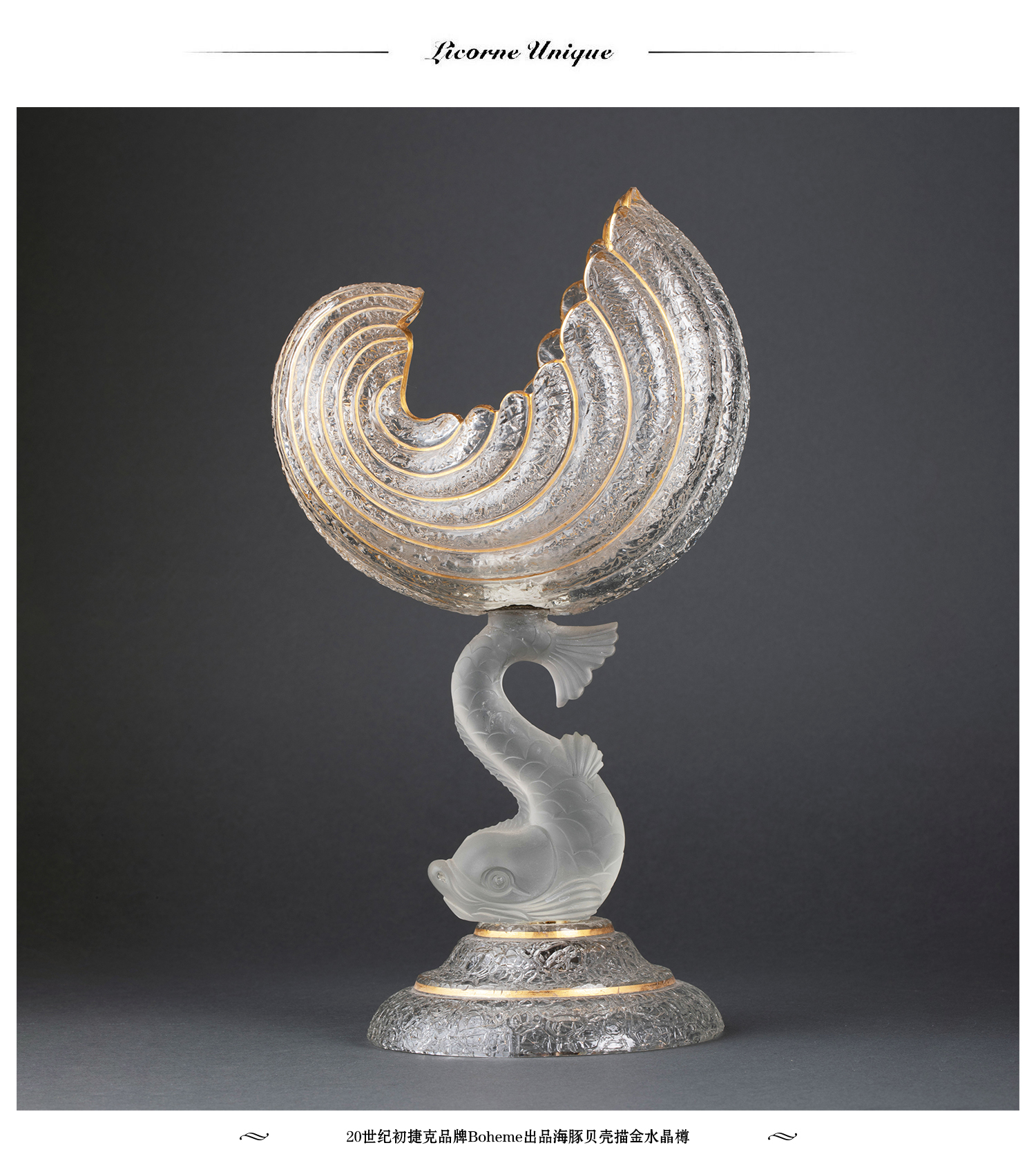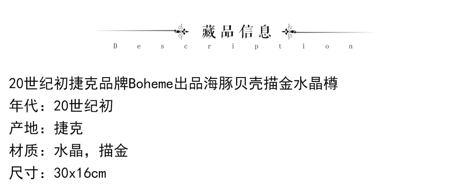 独角鹿西洋古董20世纪初捷克品牌Boheme出品海豚贝壳描金水晶果樽