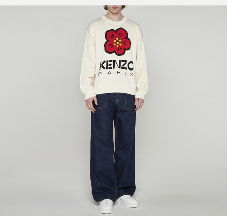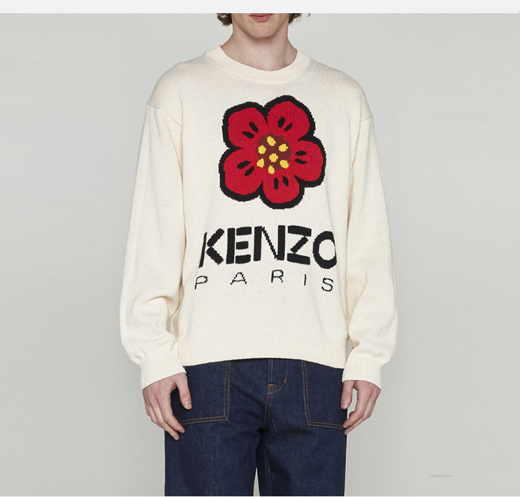 KENZO 高田贤三 男士棉质海棠花徽标长袖针织衫 杏色 FD55 PU380 3LD 02