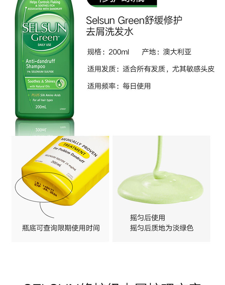 SELSUN 绿色去屑洗发水 200MLJPY带授权招加盟代理