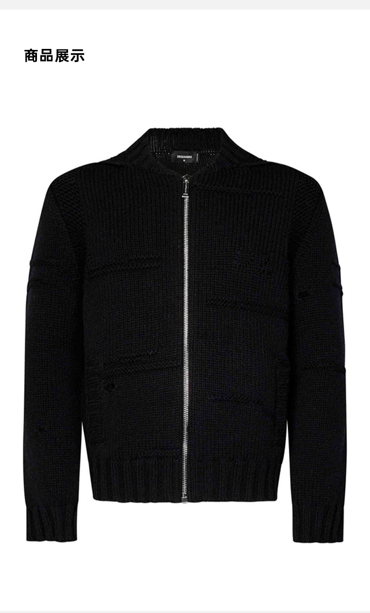 DSQUARED2 男士羊毛拉链长袖针织开衫 黑色 S71HA1320 D13061 900