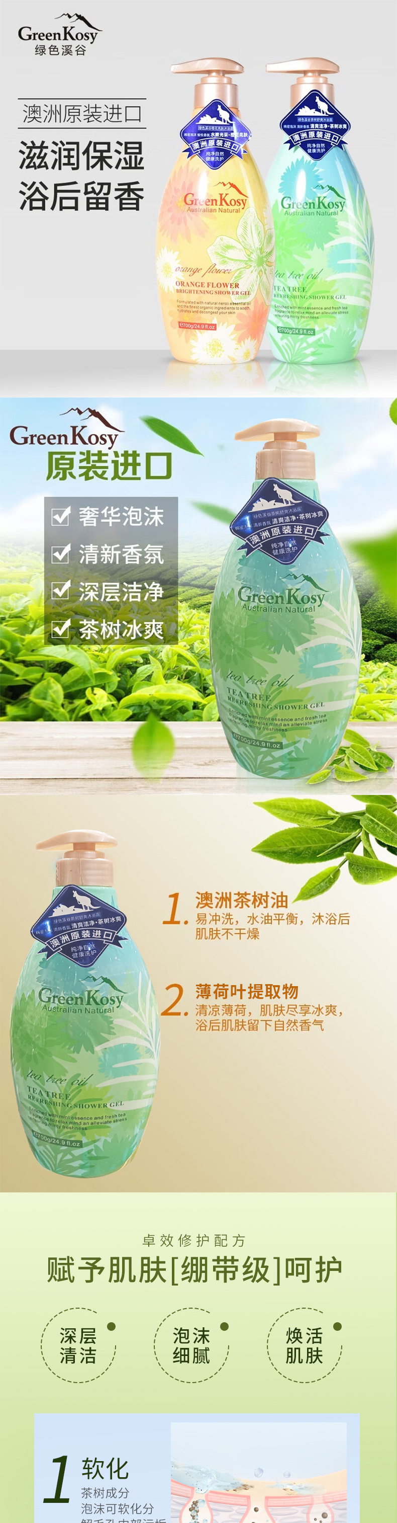 澳大利亚进口绿色溪谷沐浴露700g 【茶树舒爽I 橙花亮肤型】