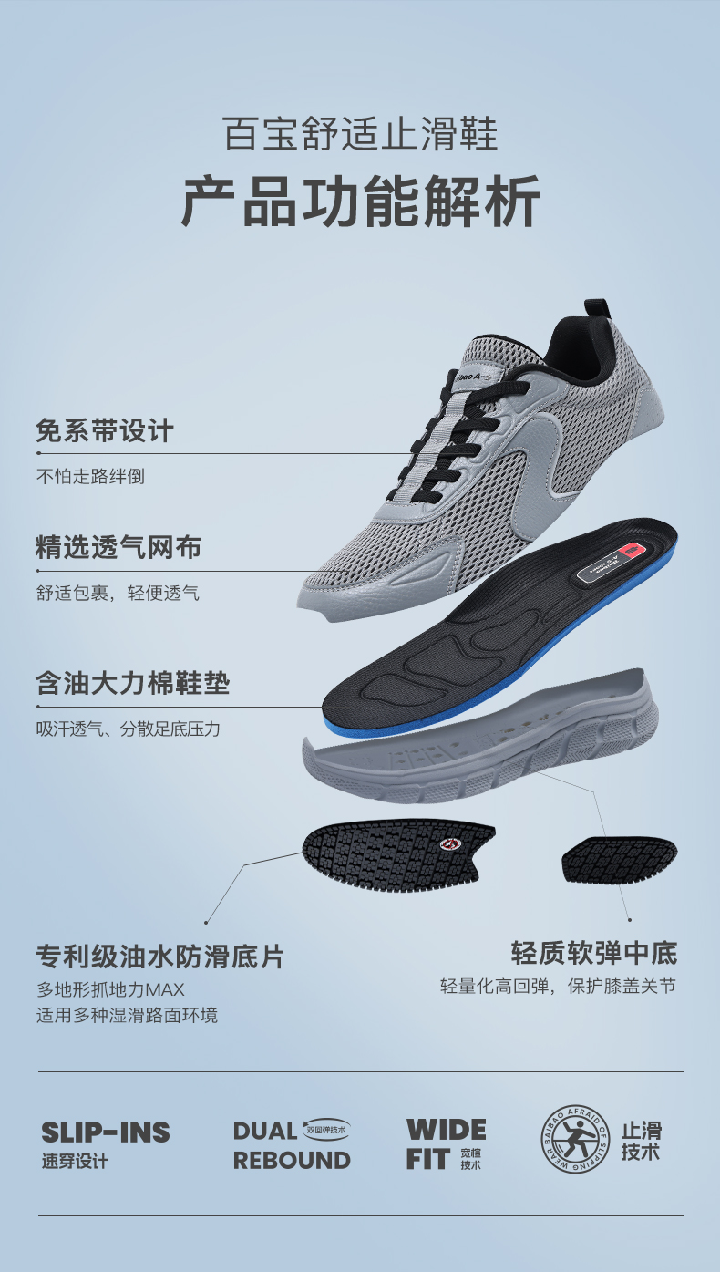 百宝2025春季新品男士休闲松紧带一脚蹬止滑送爸爸回弹减震运动鞋