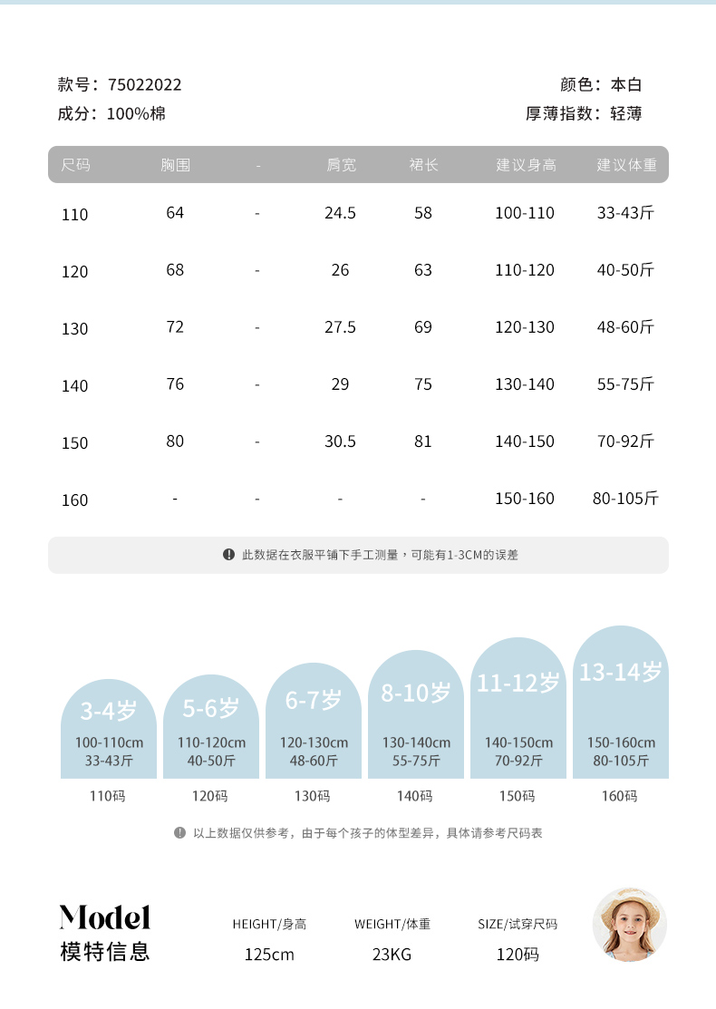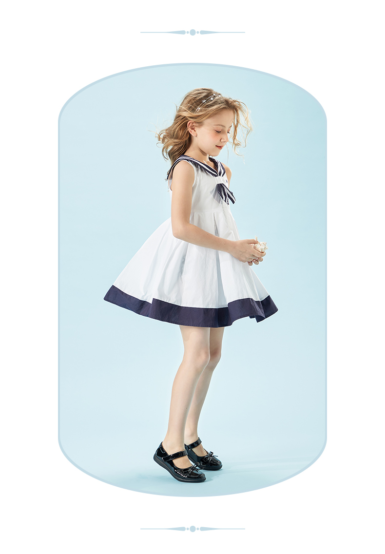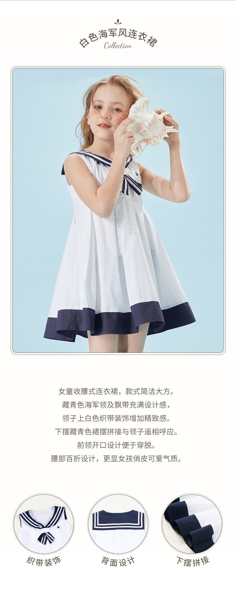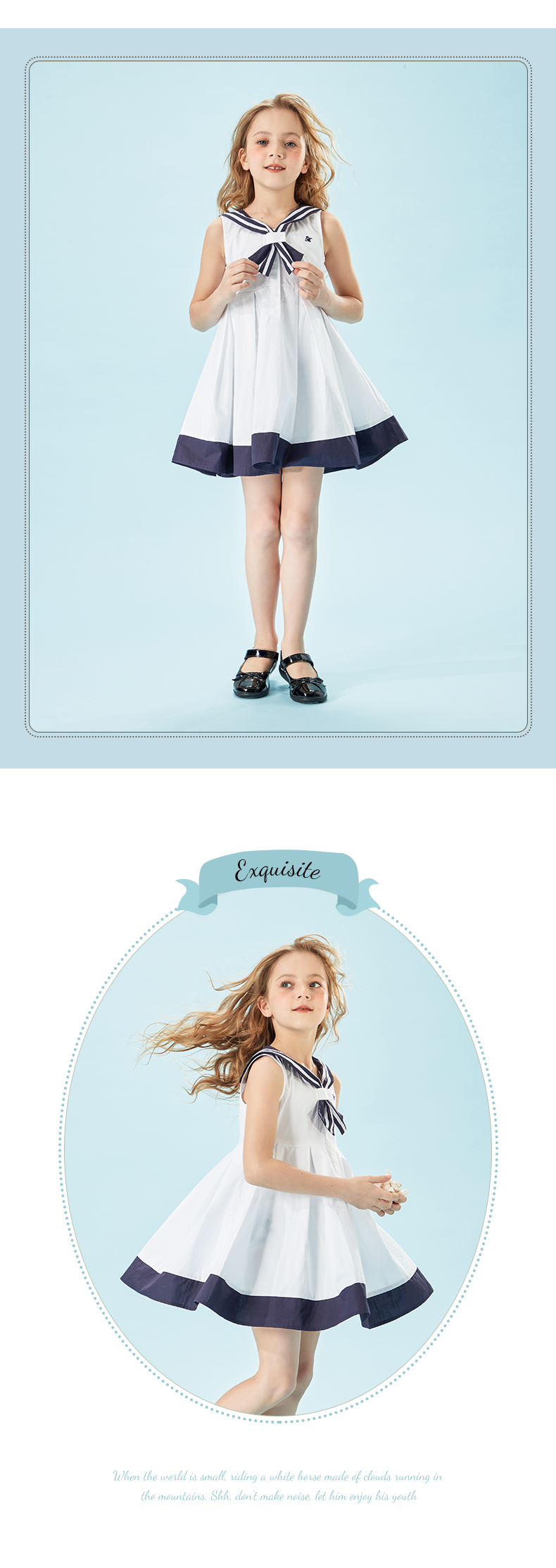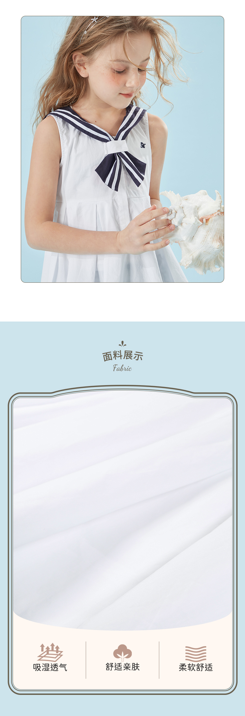 mettekids儿童裙子学院风女童时髦无袖连衣裙夏中大童纯棉长裙