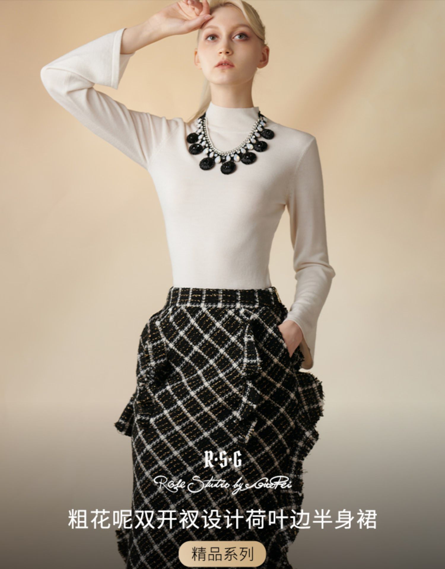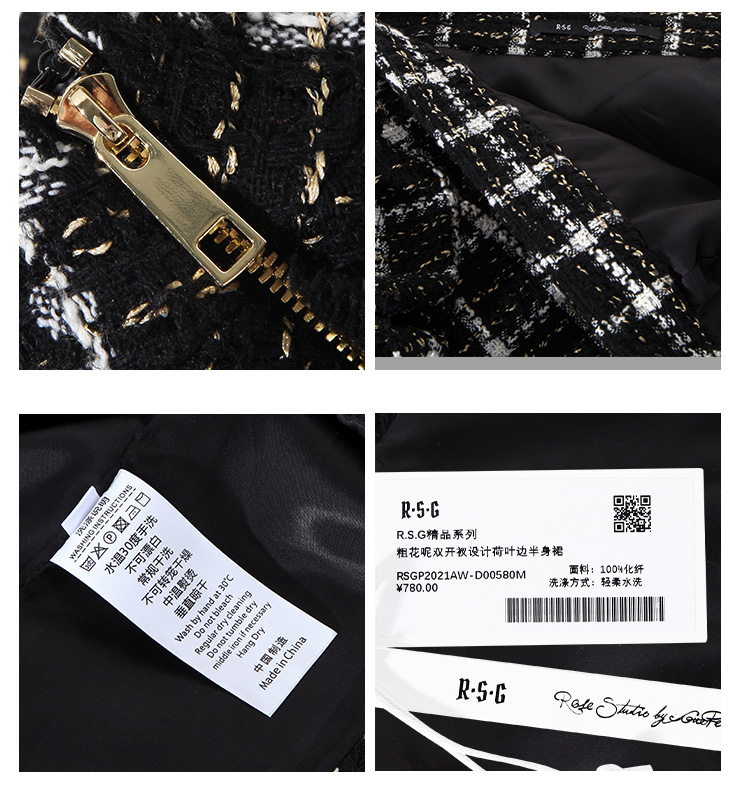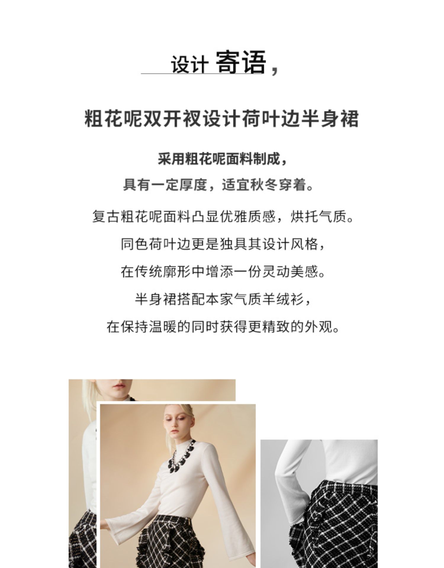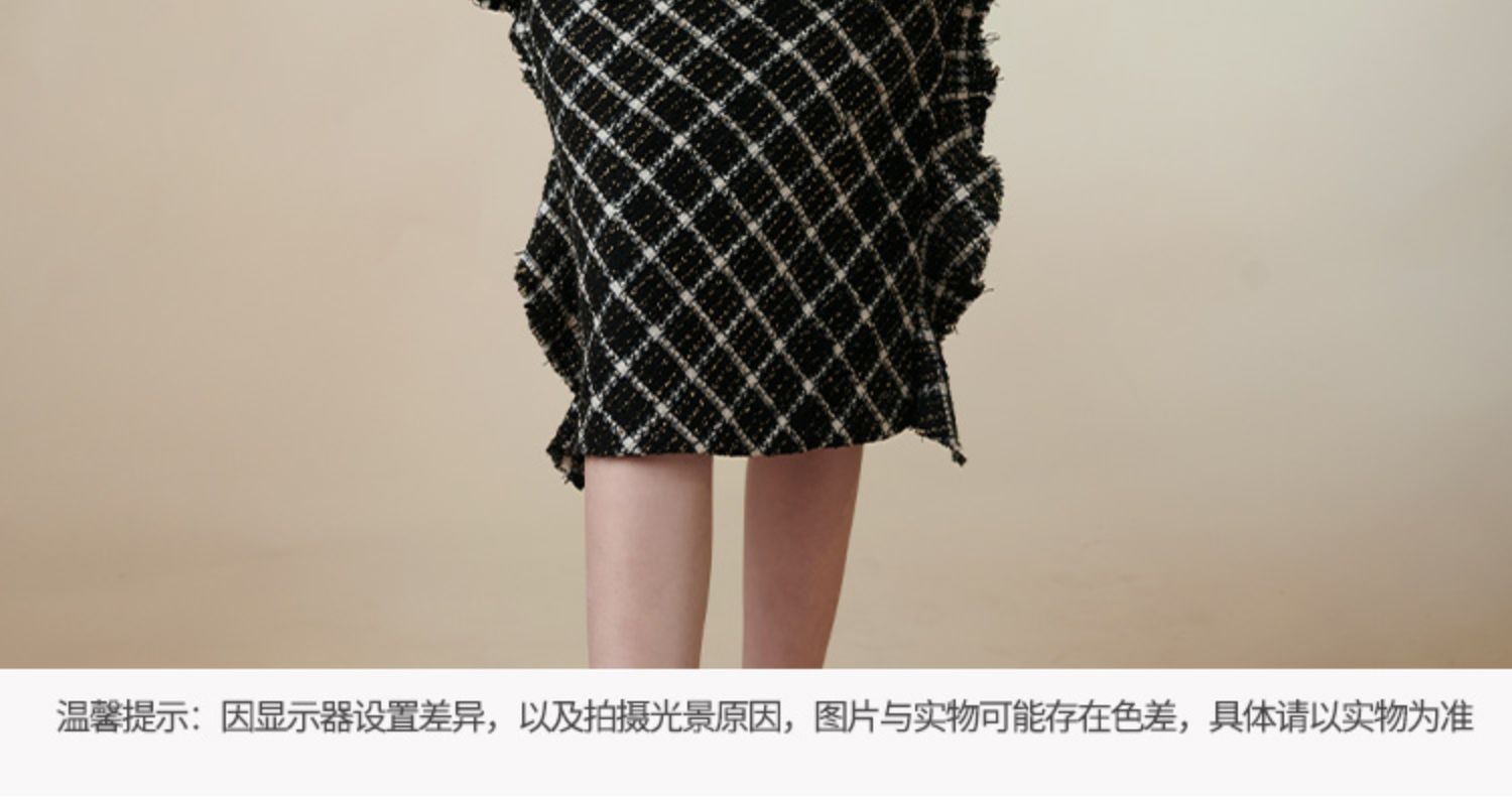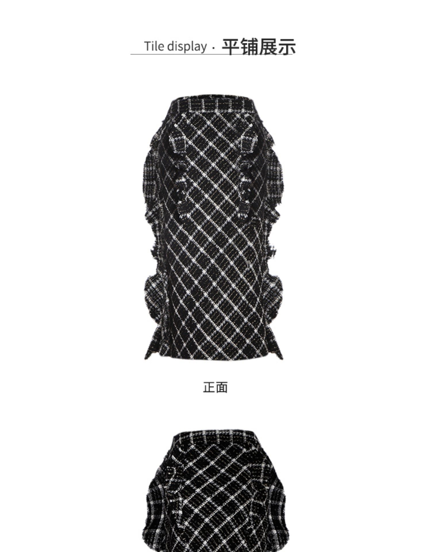 RSG郭培成衣品牌原创设计粗花呢双开衩荷叶边半身包臀裙
