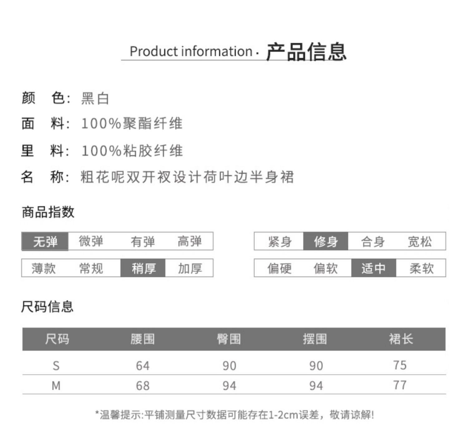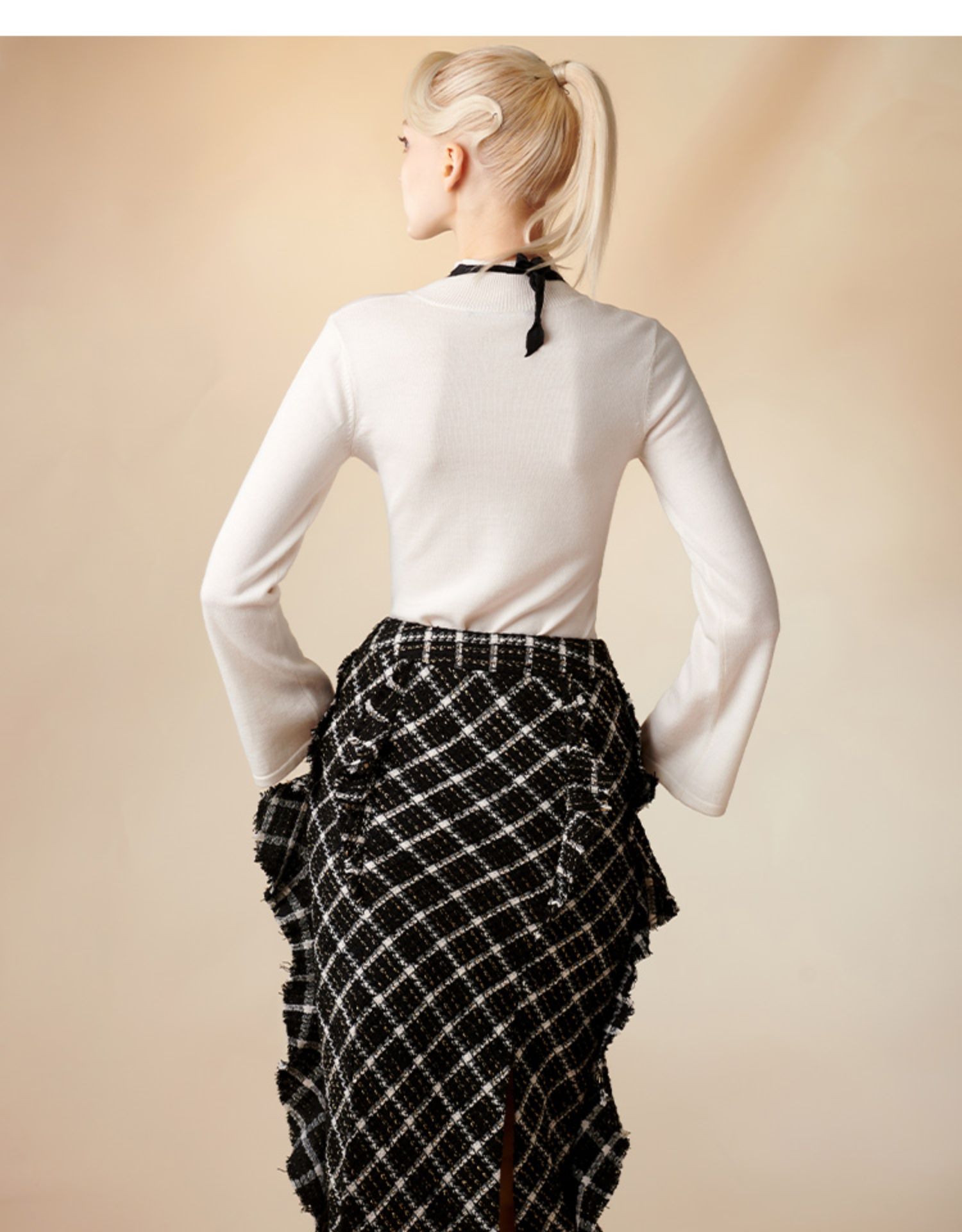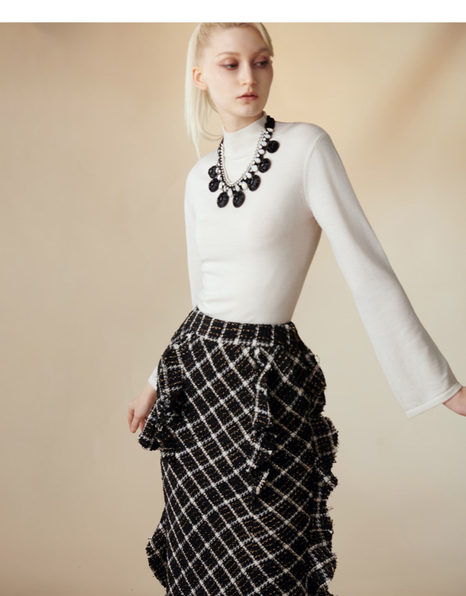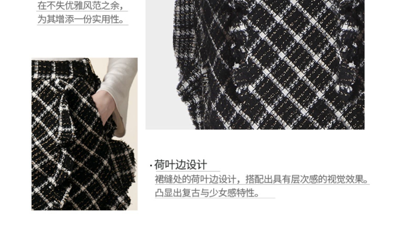 RSG郭培成衣品牌原创设计粗花呢双开衩荷叶边半身包臀裙