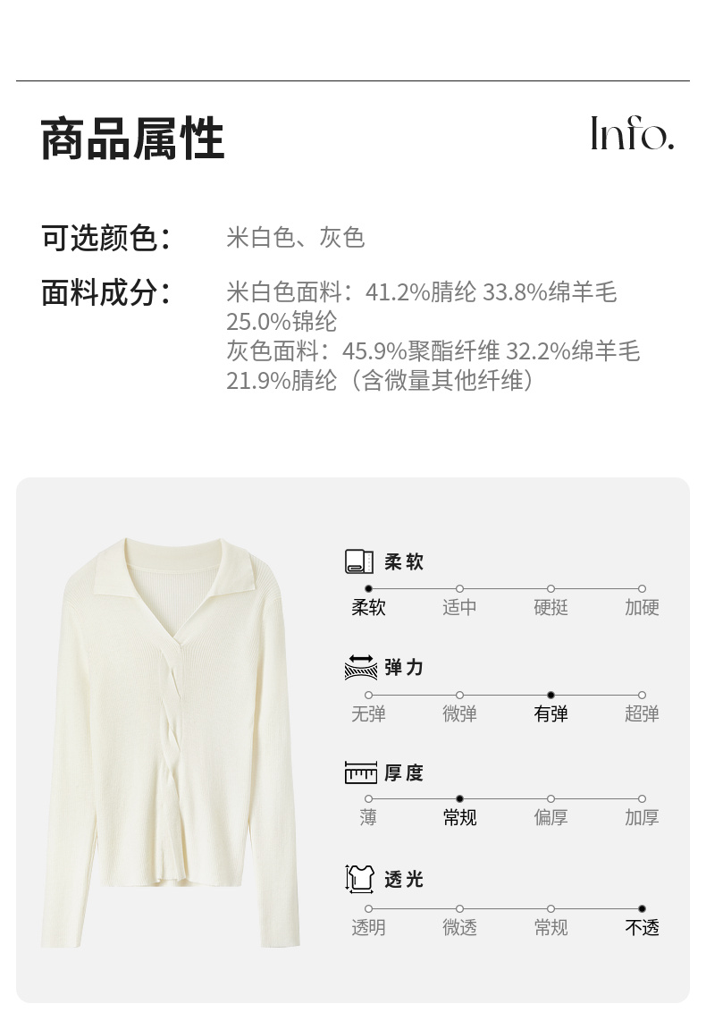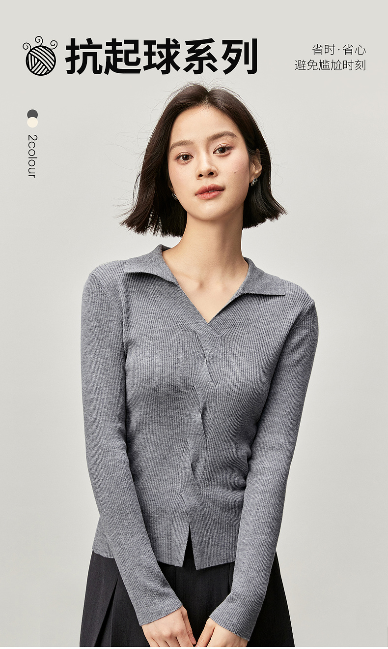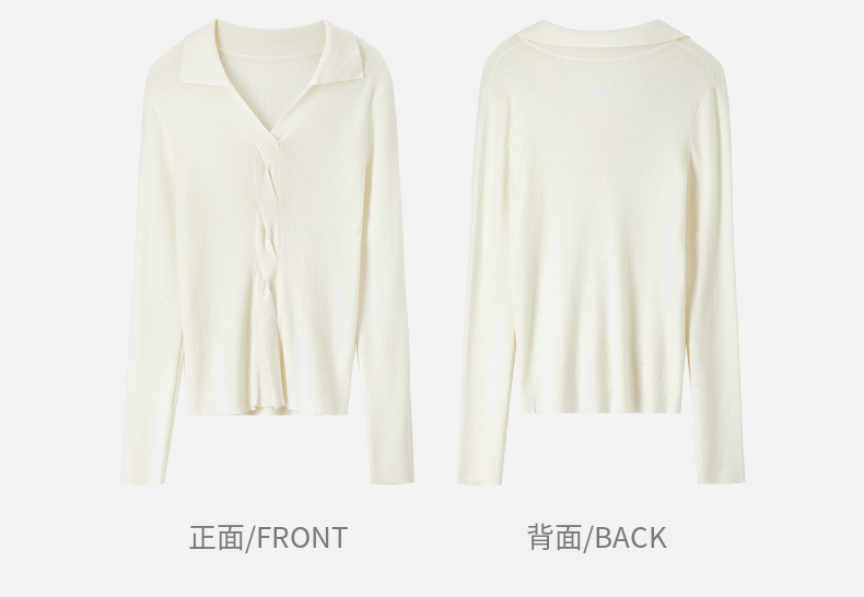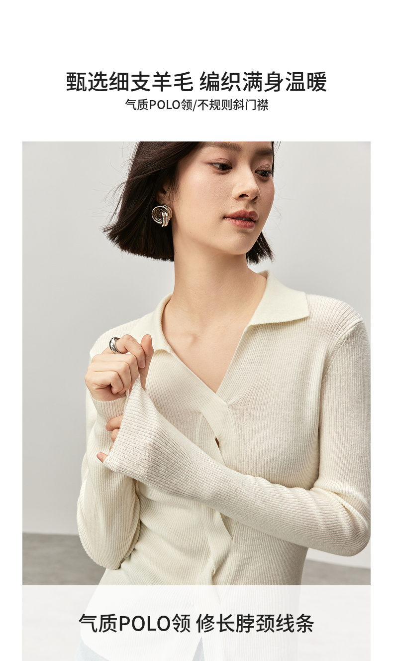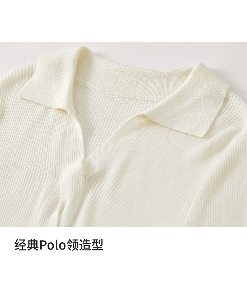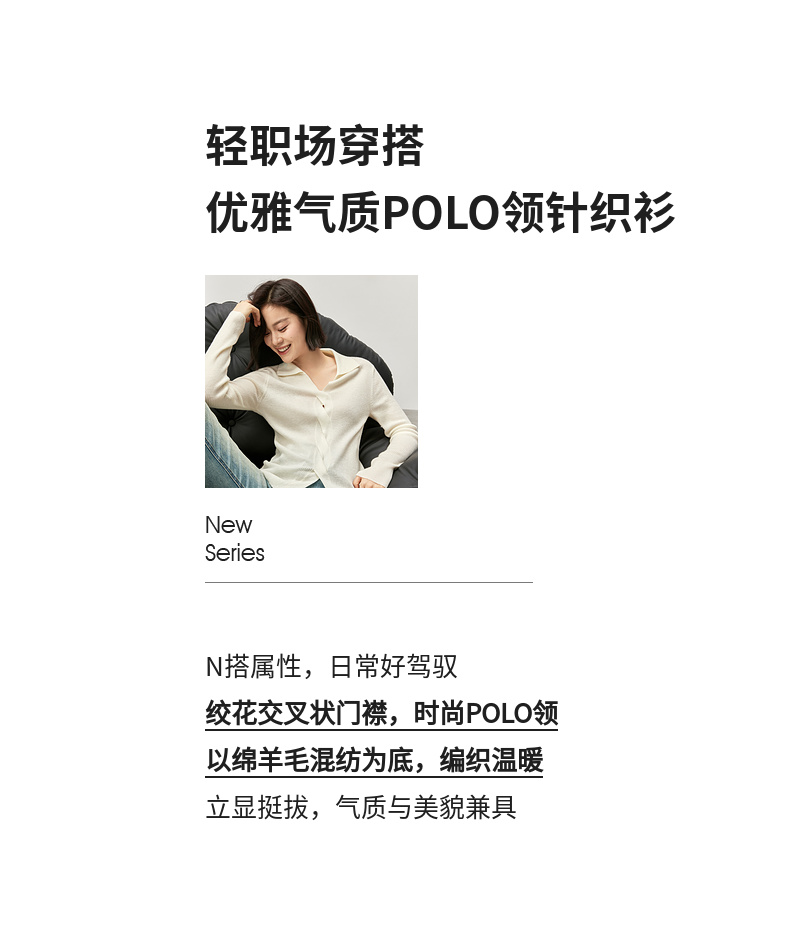 【内购】时尚简约舒适绞花交叉状门襟软糯弹力POLO领含绵羊毛长袖针织衫-W53HA3273X