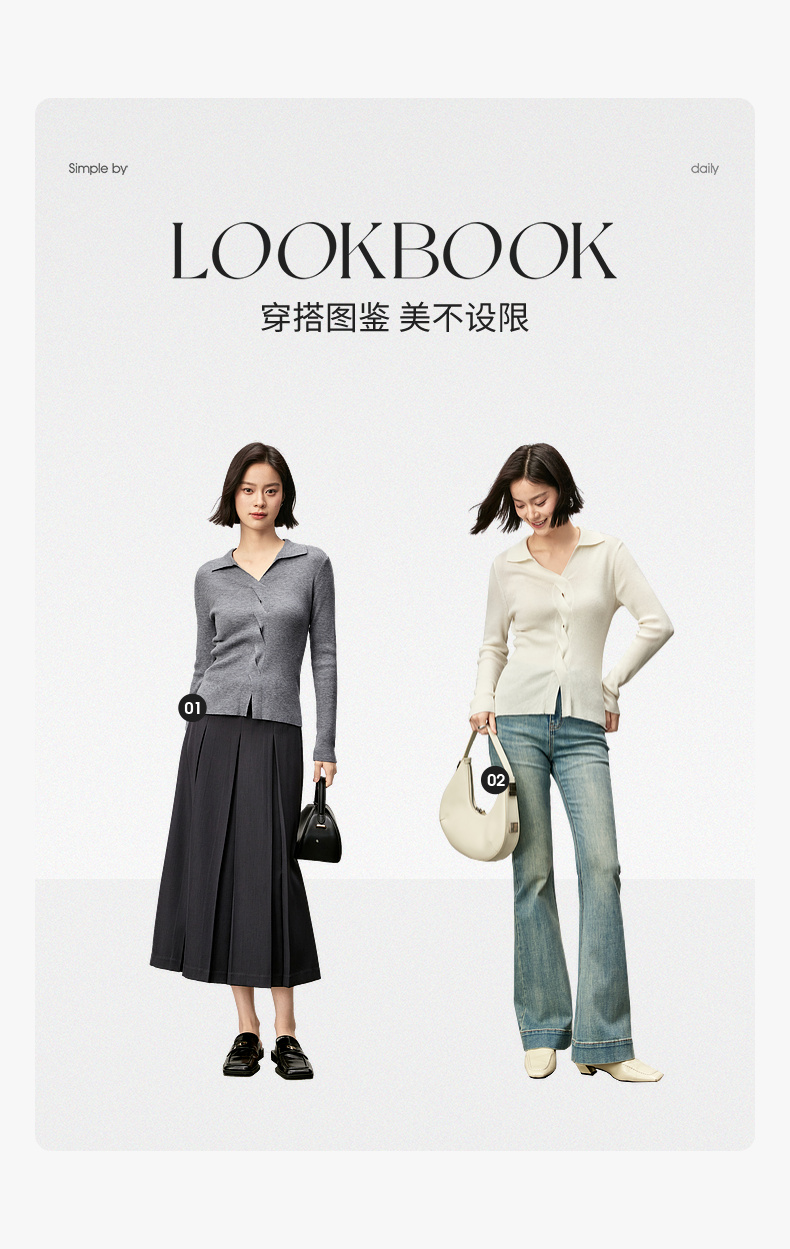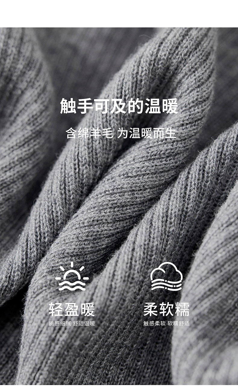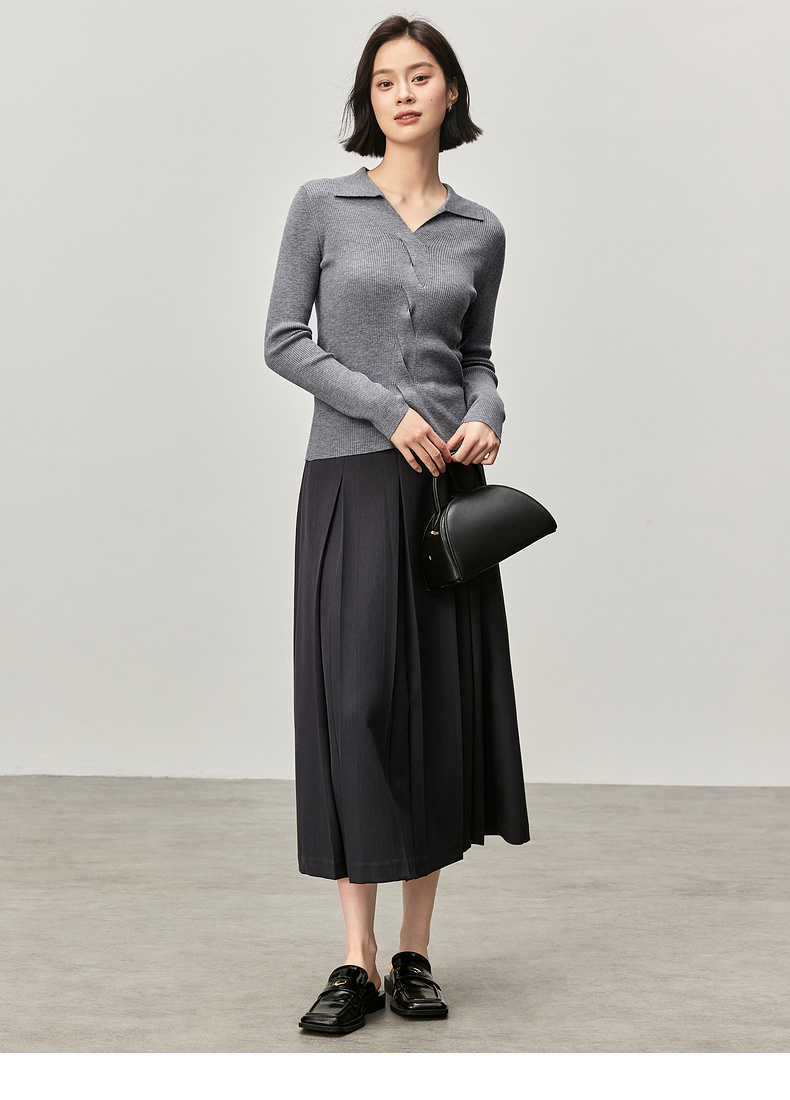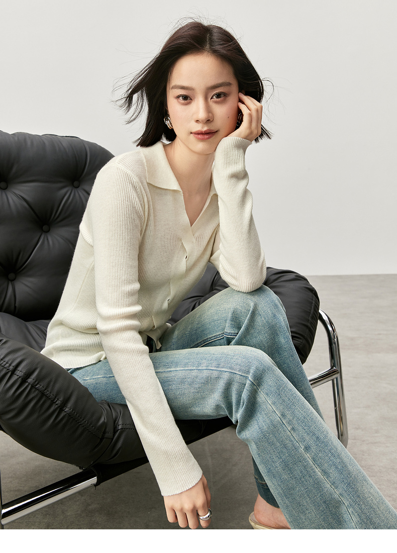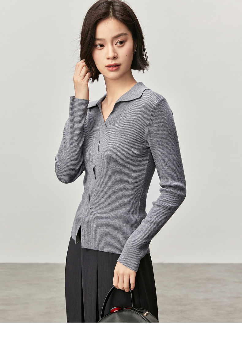 【内购】时尚简约舒适绞花交叉状门襟软糯弹力POLO领含绵羊毛长袖针织衫-W53HA3273X