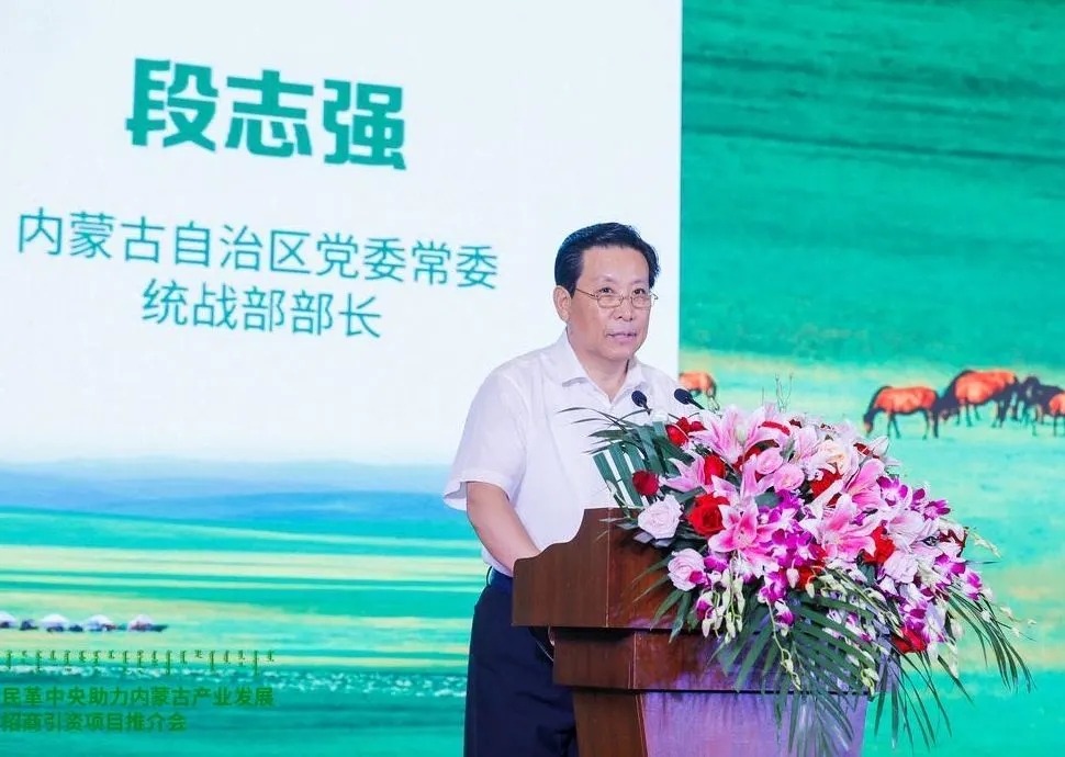 内蒙古自治区党委常委、统战部部长段志强,民革中央社会服务部副部长、民革中央企业家联谊会第一副会长蔡永飞,民革广东省委会主委、仲恺农业工程学院院长程萍分别在会上致辞。民革内蒙古区委会主委、内蒙古市场监督管理局局长白清元主持推介会