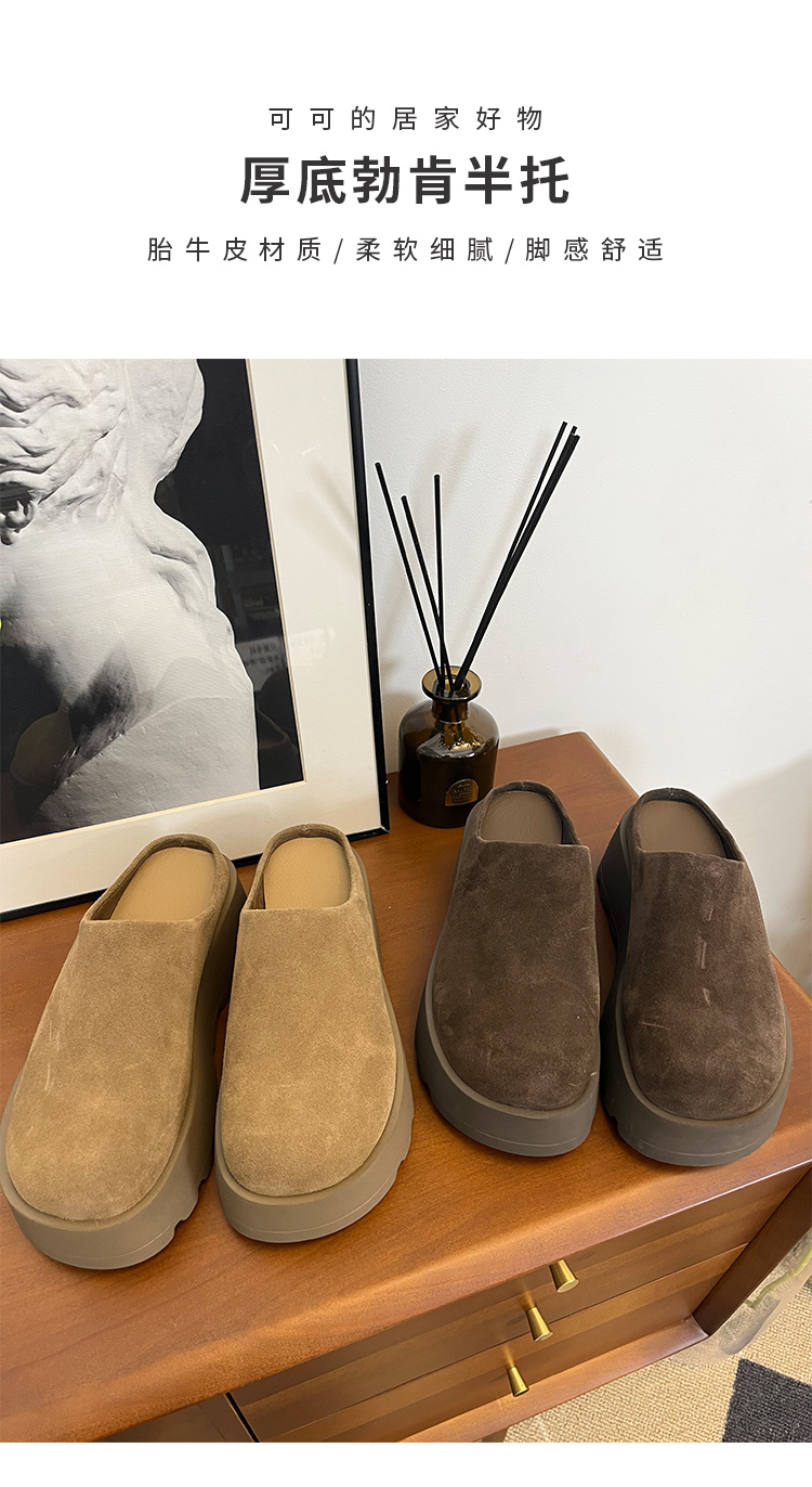 【活动商品,不退不换】可可的居家好物 厚底勃肯半托 胎牛皮材质 柔软细腻 脚感舒适