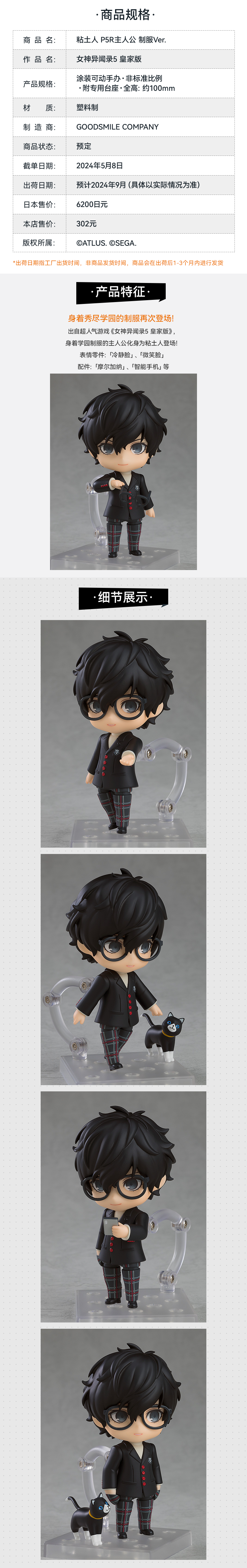 【GSC现货】粘土人 P5R主人公 制服Ver. 女神异闻录5 皇家版