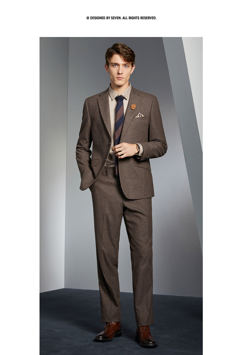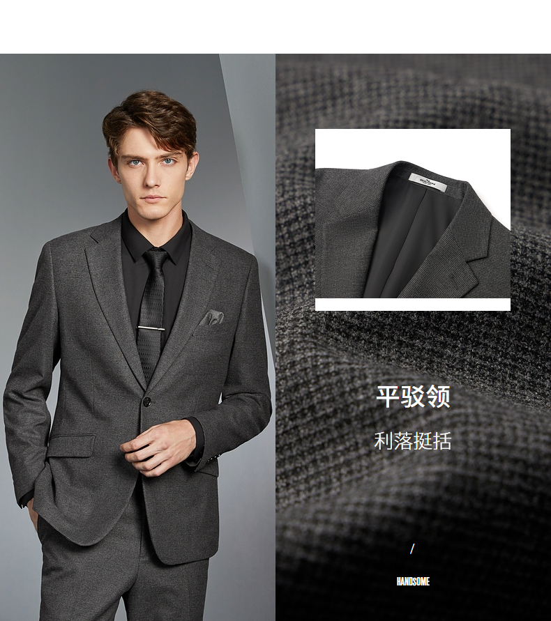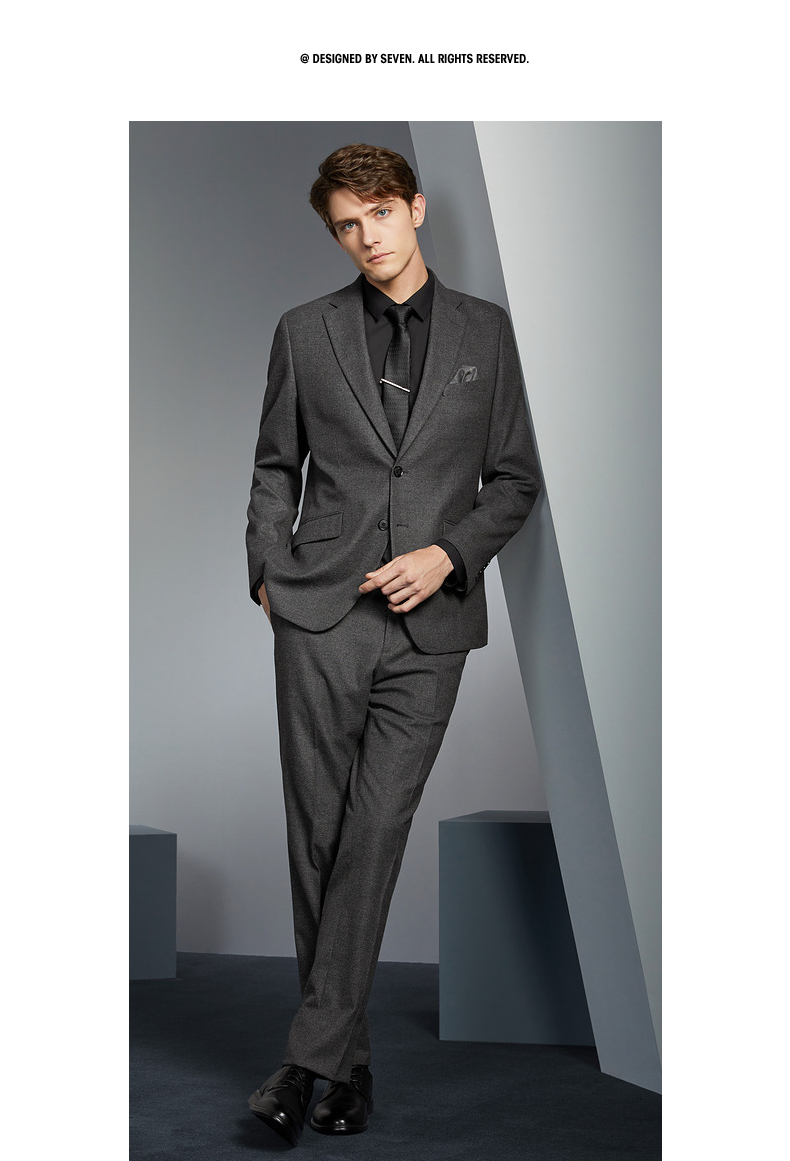 【色织格纹】柒牌男装西服套装男秋冬新款商务平驳领绅士西装外套 125C70250