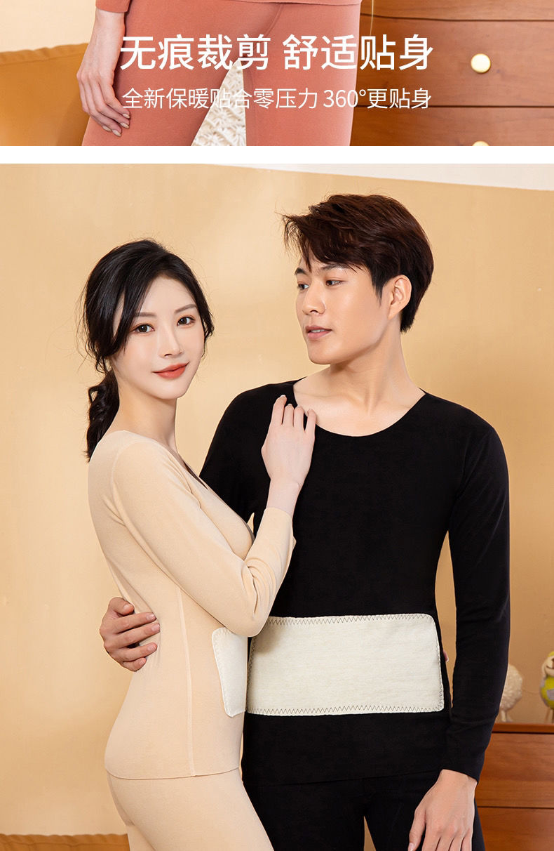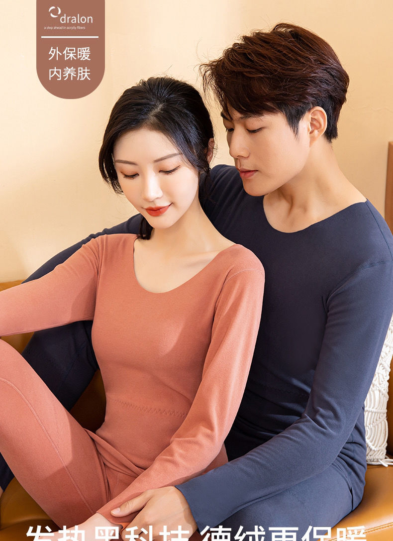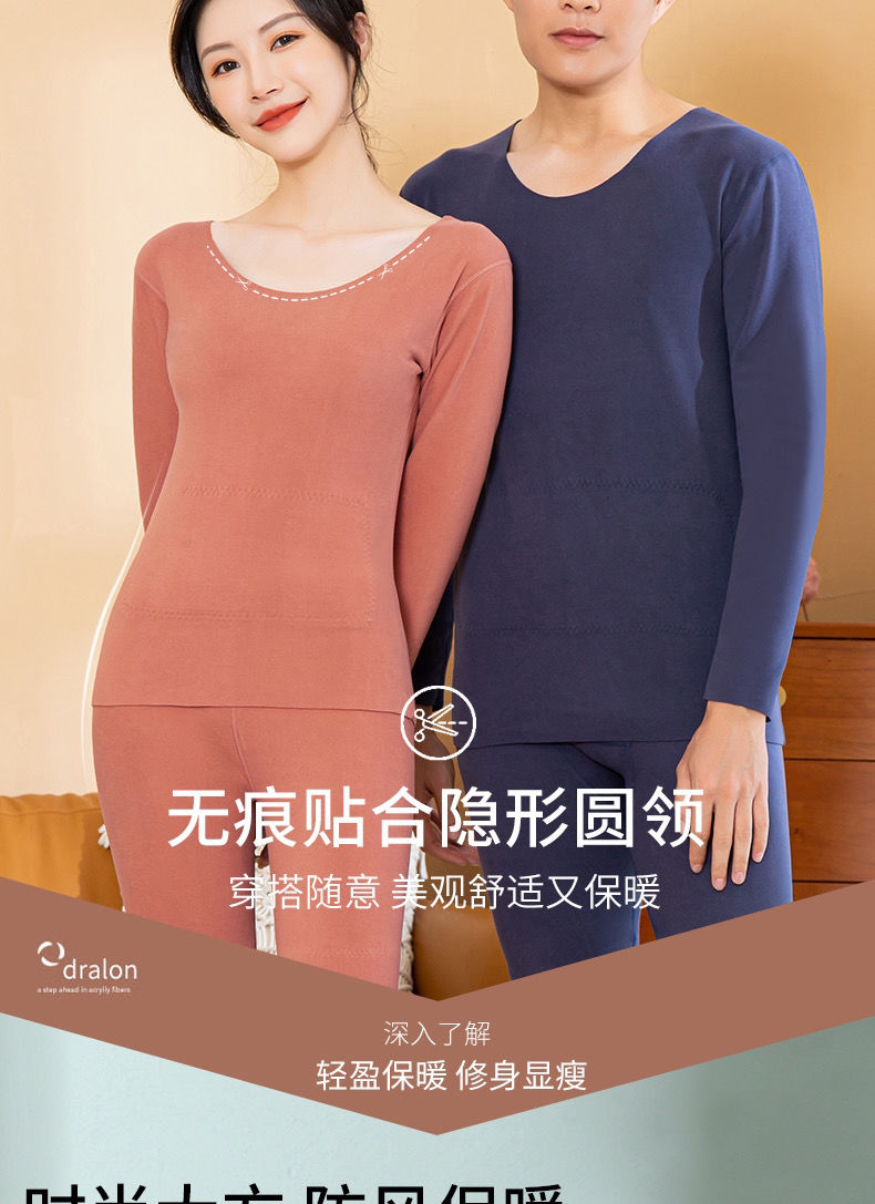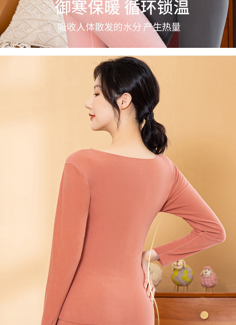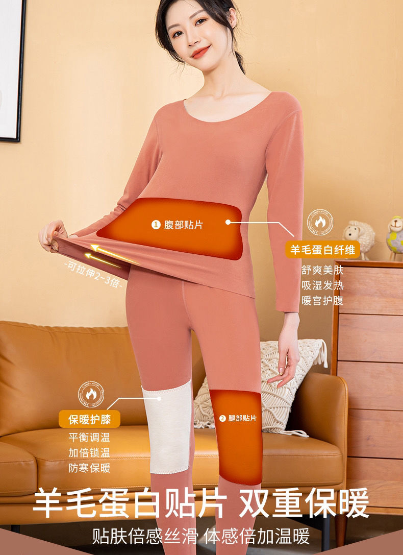 黛唯梵自发热德绒羊毛蛋白纤维黑科技护肤保暖套装无痕秋衣秋裤两件套