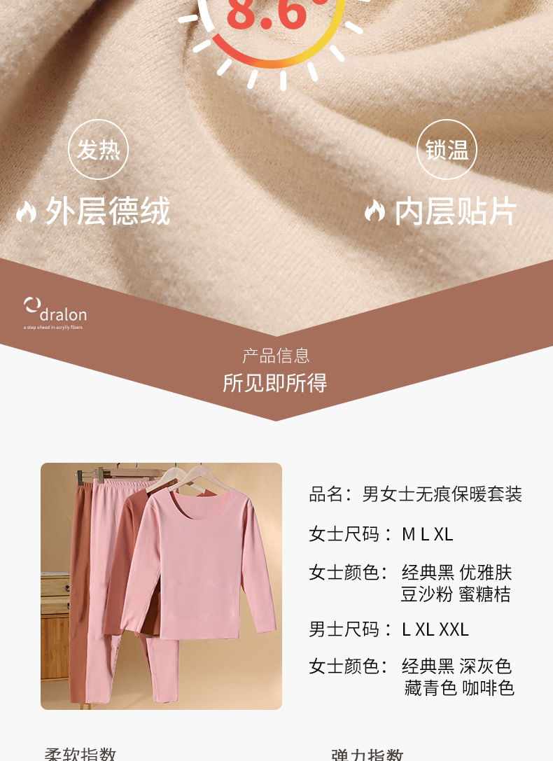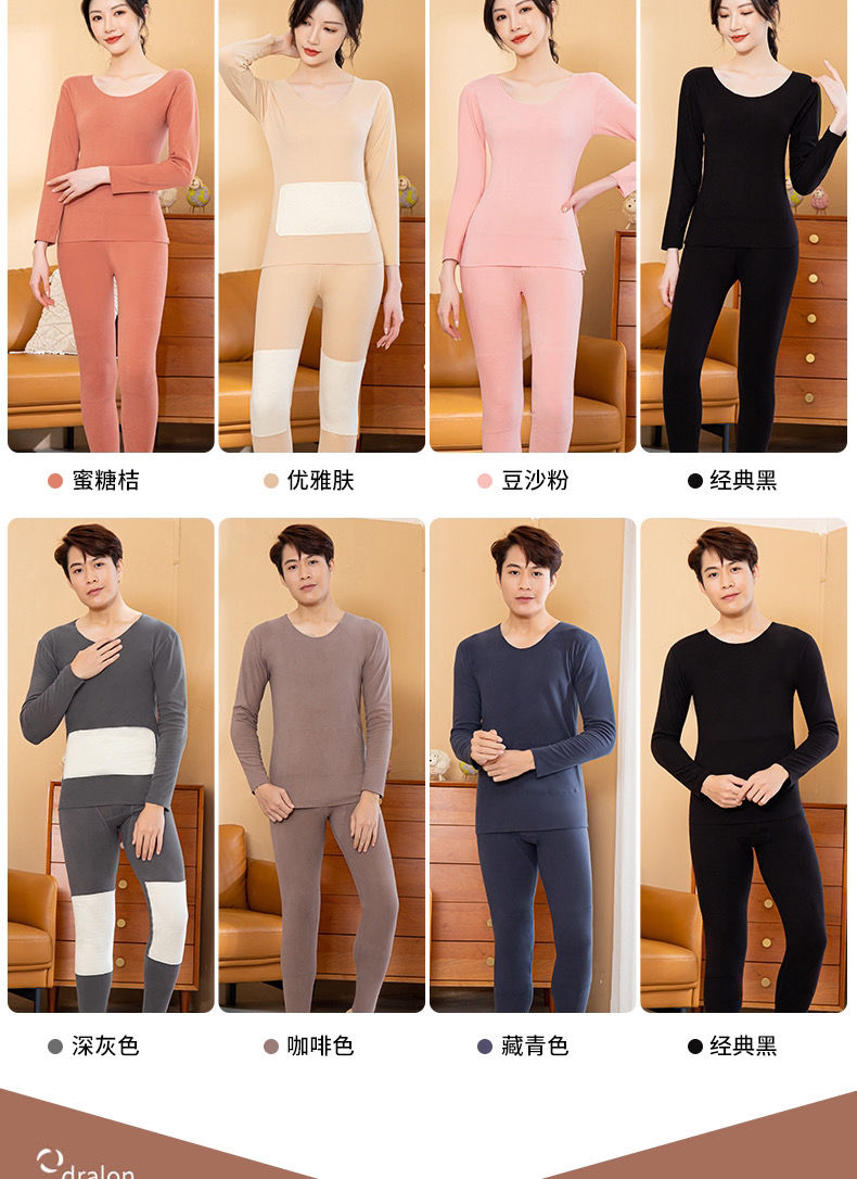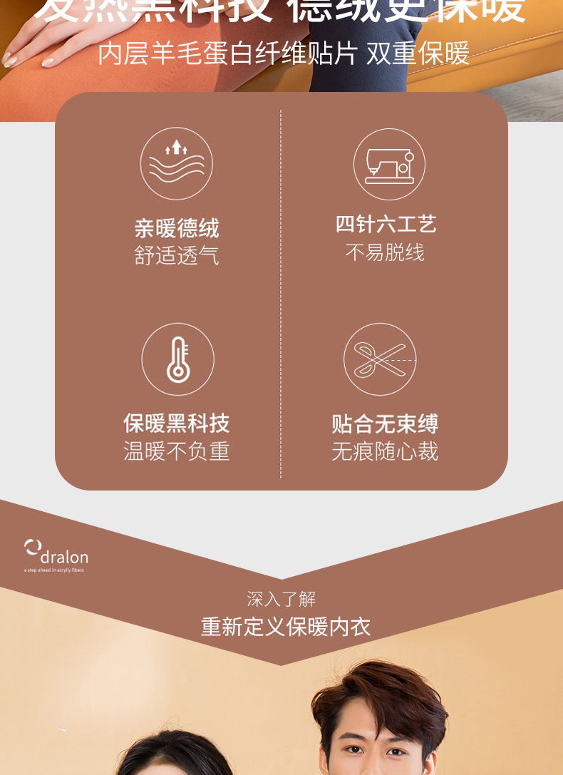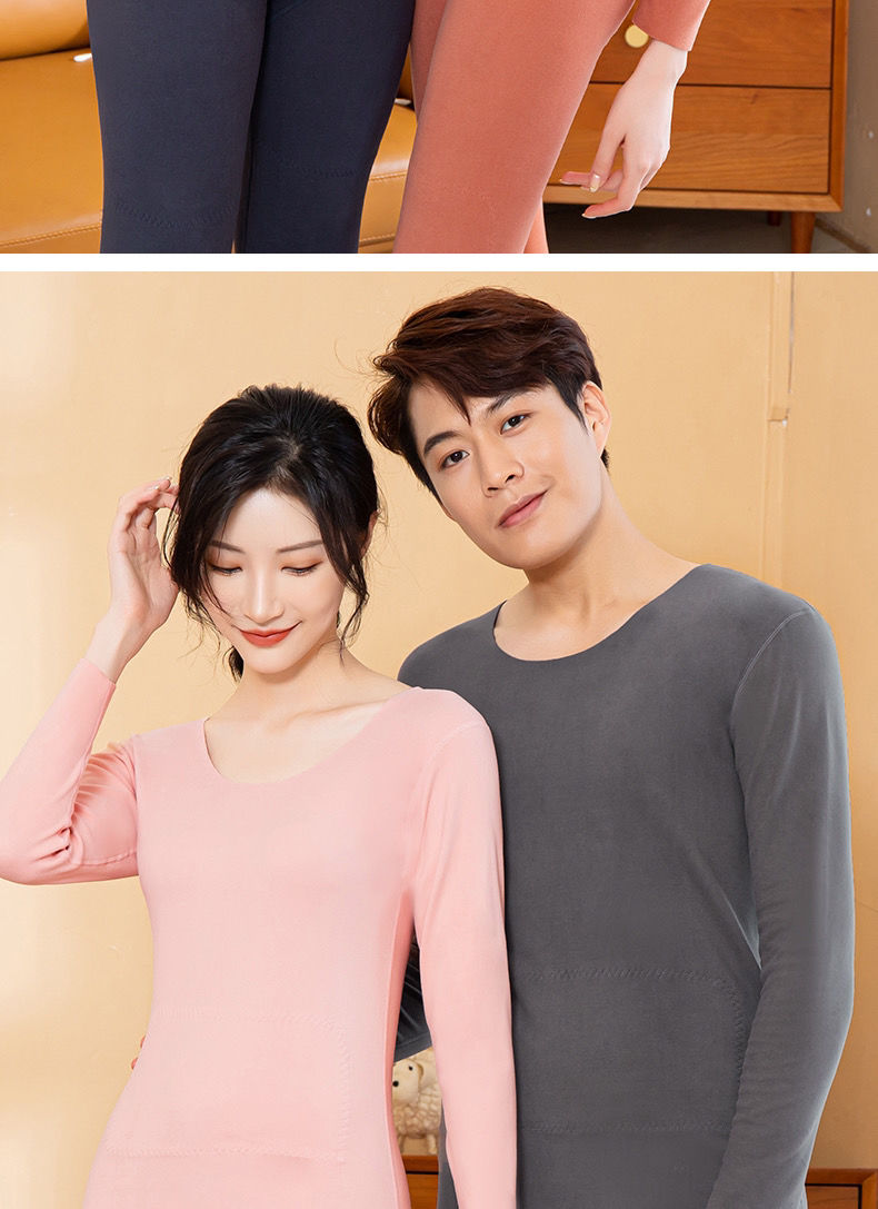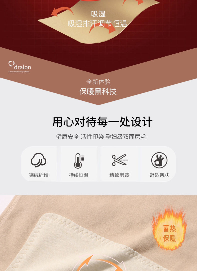 黛唯梵自发热德绒羊毛蛋白纤维黑科技护肤保暖套装无痕秋衣秋裤两件套
