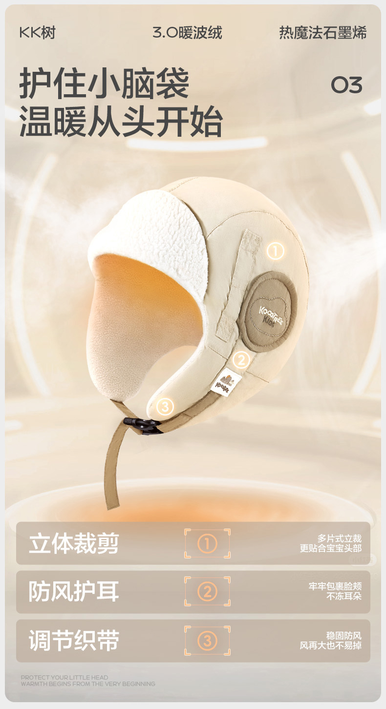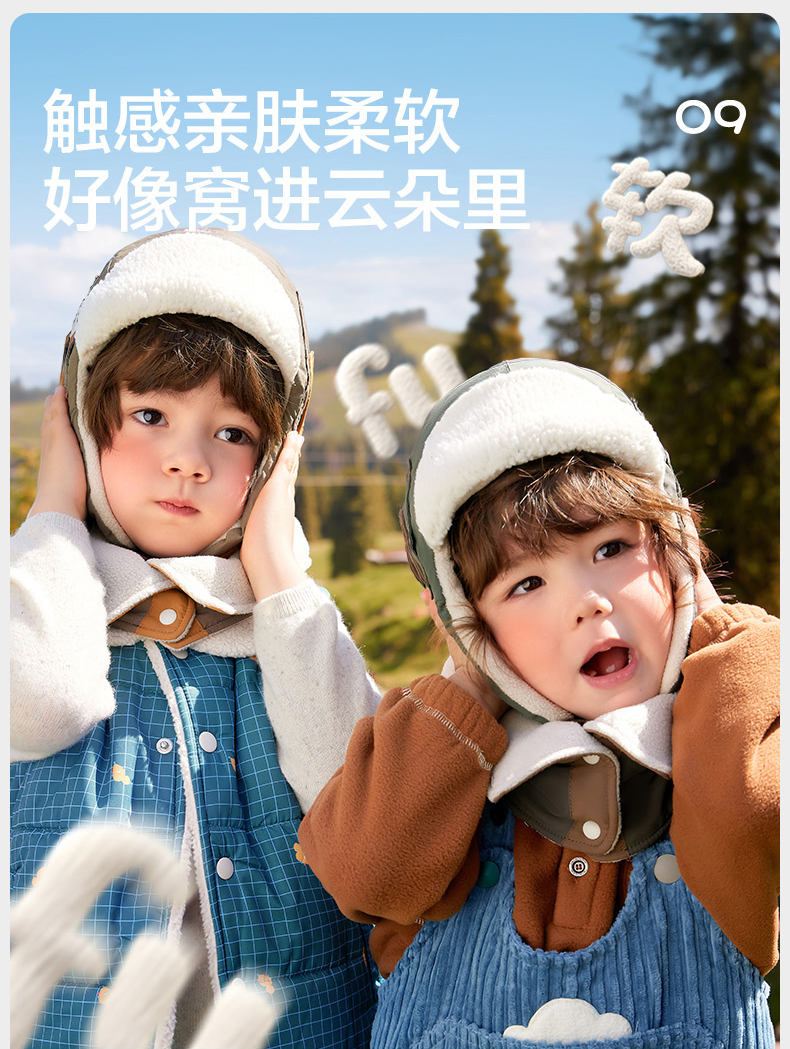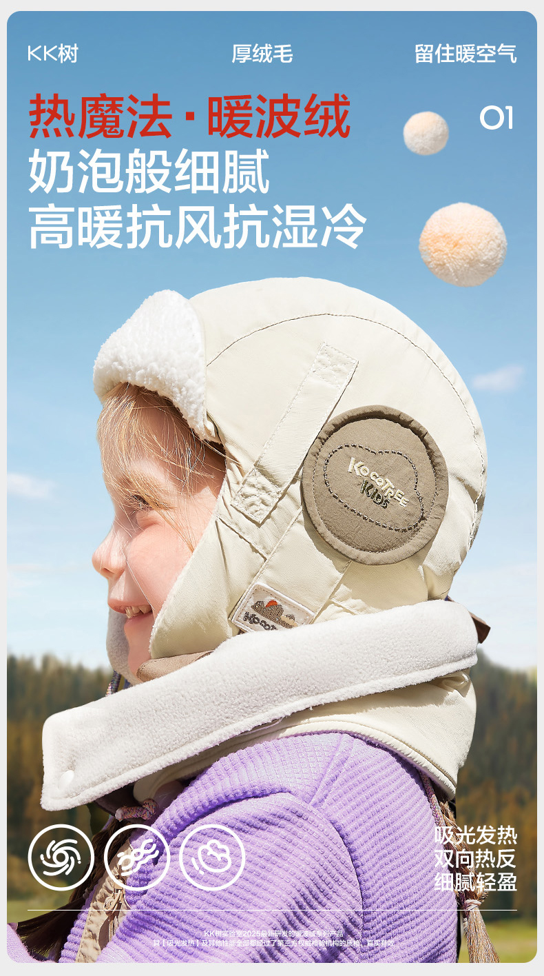 KK树儿童帽子秋冬季男童女孩宝宝雷锋帽防风护耳冬天保暖围脖手套云朵领航员抱耳帽