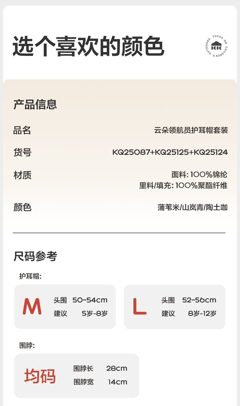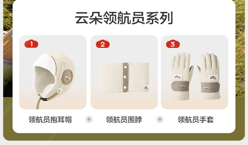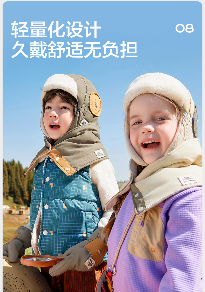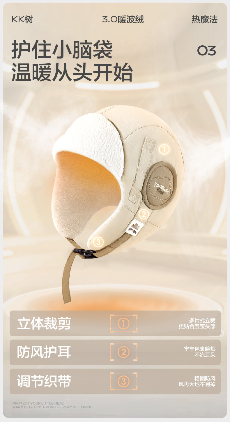 KK树儿童帽子秋冬季男童女孩宝宝雷锋帽防风护耳冬天保暖围脖手套云朵领航员抱耳帽